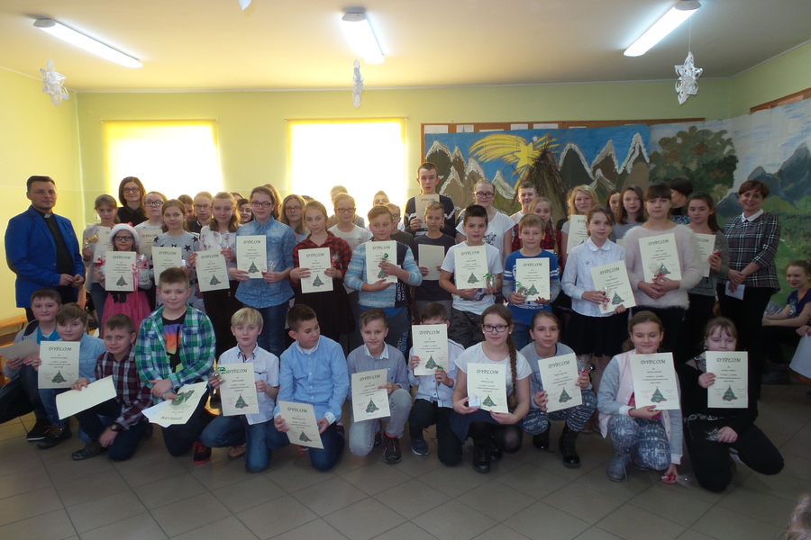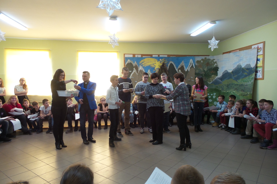 Wręczenie nagród i dyplomów odbyło się 22 grudnia 2016 roku podczas wspólnego kolędowania. Wyłonienie zwycięzców okazało się bardzo trudne. Dzięki wsparciu dyrekcji oraz ks. proboszcza Wiesława Cieplika wszyscy uczestnicy zdobyli I miejsce oraz otrzymali świąteczny upominek. Na uczestników czekała jeszcze jedna atrakcja losowanie sześciu dodatkowych nagród. Otrzymali je: Anna Więcek, Wojciech Wolski, Patrycja Biegańska, Marlena Kałus, Weronika Gnacy i Julia Gatner.