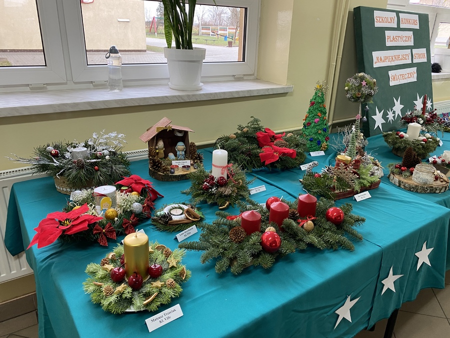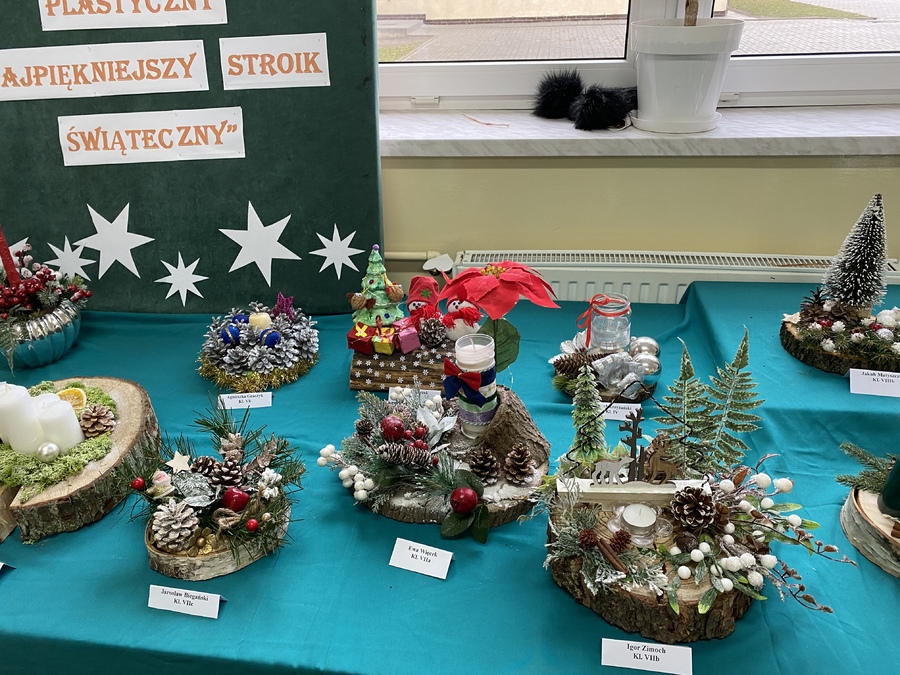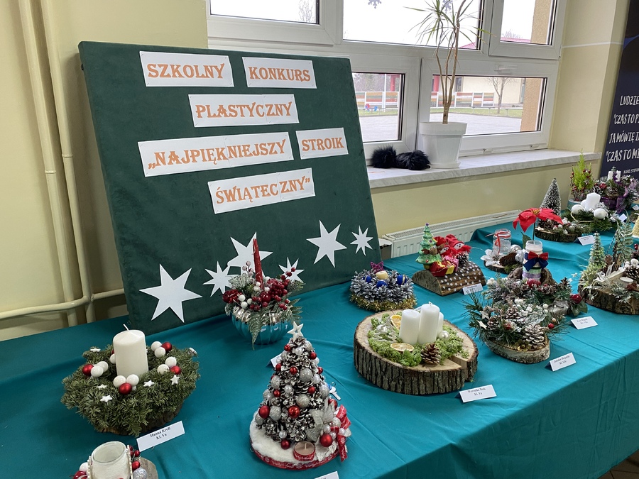 W grudniu w naszej szkole odbył się Szkolny Konkurs na „Najpiękniejszy stroik świąteczny”. Do udziału zaproszeni zostali uczniowie klas IV-VIII szkoły podstawowej. Ich zadaniem było wykonanie dowolną techniką stroika świątecznego. Organizatorkami konkursu były: Gabriela Rachel-Nowak i Agnieszka Podejma-Wróblewska.