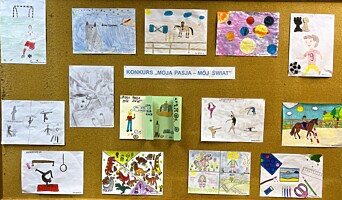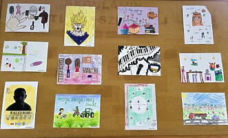 Prace zwycięzców prezentowane były na szkolnym korytarzu.