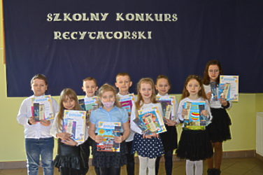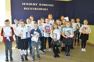 Wszyscy wyróżnieni uczniowie otrzymali nagrody książkowe i pamiątkowe dyplomy, natomiast pozostali uczestnicy konkursu otrzymali długopisy i zakładki do książek. Organizatorem konkursu była Ewa Gaze nauczyciel bibliotekarz w Zespole Szkół w Trzcinicy.