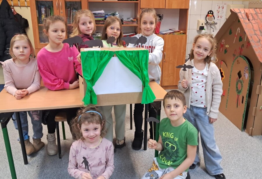 Jak mawiał wybitny niemiecki pedagog Friedrich Wilhelm Fröbel: „Żeby ożywić postacie, wystarczy tylko kawałek białego płótna lub wolna ściana oraz mała lampka. Teatrzyk cieni to doskonały sposób na rozwój wyobraźni i kreatywności dziecka, a także stymulowanie aktywności poznawczej wśród najmłodszych oraz integrowanie siły: głowy, rąk i serca”. W ramach podsumowania bloku tematycznego ,,Światło i cień”, uczniowie klas Ia i Ib stworzyli scenografię oraz sylwetki postaci do teatrzyku cieni. Następnie współpracując w parach wcielili się w role oświetleniowców, reżyserów oraz aktorów i wystawili przedstawienia według własnych pomysłów. Realizacja tego projektu przyniosła dzieciom wiele radości, a także możliwość wykazania się kreatywnością.