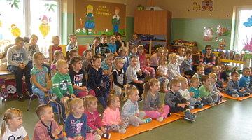Znany dzieciom „Dyzio” ze studia teatralnego HERBI - LESZNO gościł 7 października 2016r. z przedstawieniem „Królewna Śnieżka” w przedszkolu i szkole podstawowej w Trzcinicy. Dzieci bardzo uważnie śledziły kolejne wydarzenia w przedstawieniu mogąc jednocześnie czynnie uczestniczyć w kolejnych scenach. Często wybuchali gromkim śmiechem, choć nie brakowało również groźnych wątków zwłaszcza, gdy na scenie pojawiła się „zła Królowa”. Takie spotkania z aktorami pozwalają przeżyć radosne chwile z literaturą i są wspaniałym wstępem do wizyty w prawdziwym teatrze.