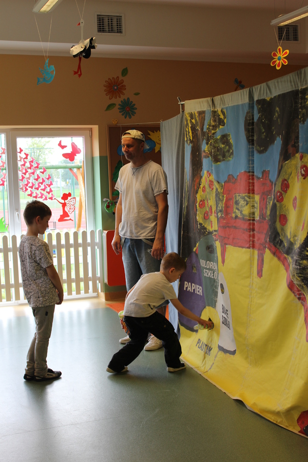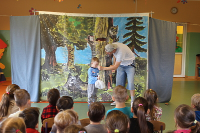 9 maja 2017r. gościliśmy w naszym przedszkolu aktorów ze studia teatralnego „HERBI” z Leszna, którzy przedstawili naszym przedszkolakom i uczniom klas I-III bajkę pt. „Wielkie sprzątanie na leśnej polanie”. W czasie spektaklu dzieci miały możliwość występowania na scenie razem z aktorami. Przedstawienie przybliżyło i utrwaliło dzieciom wiadomości z zakresu ekologii i wywołało u nich uśmiech oraz zaciekawienie.