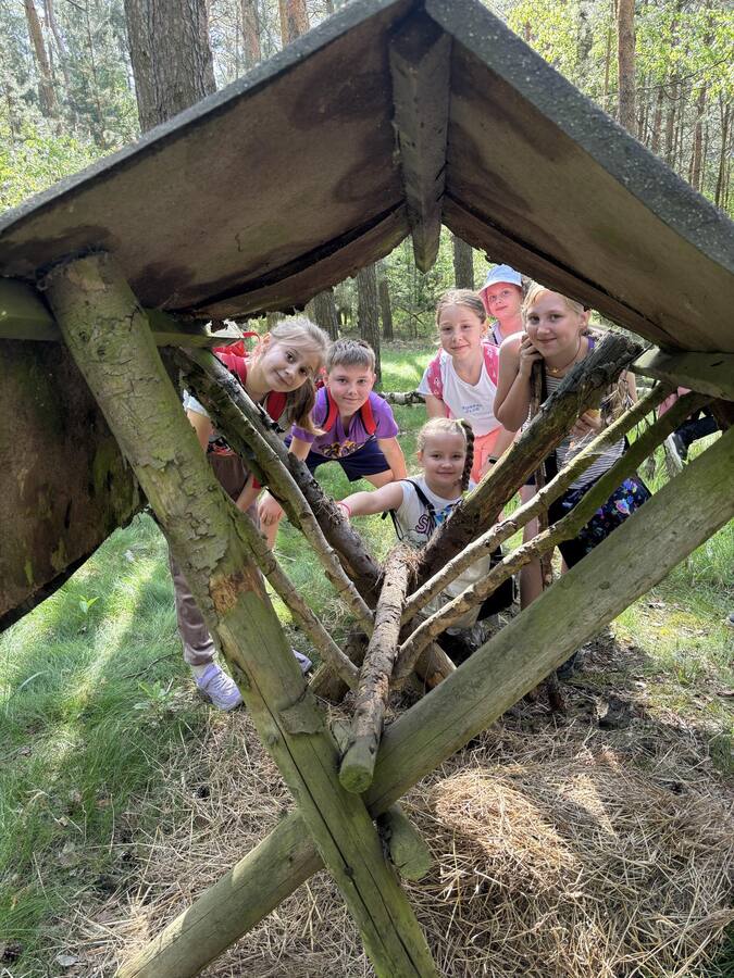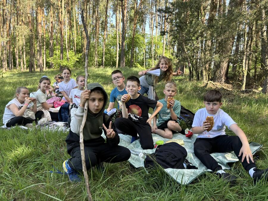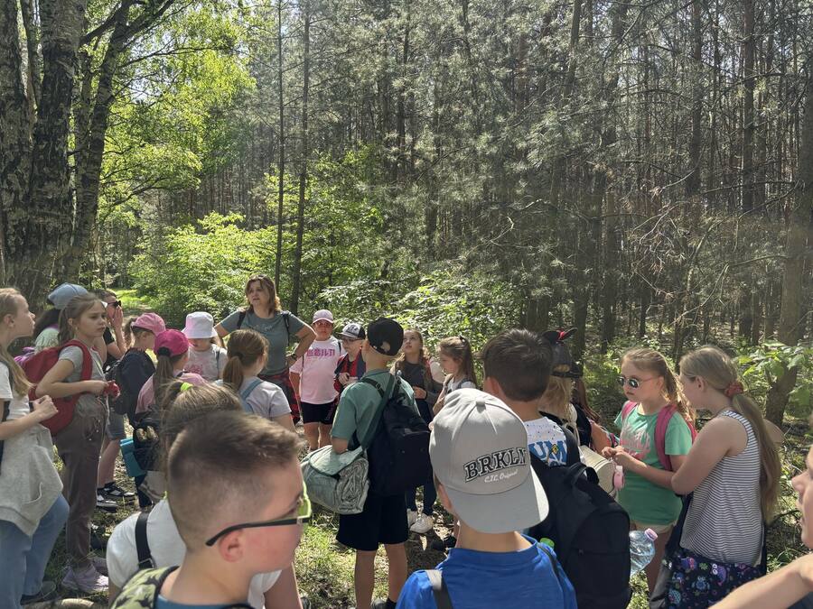 30 kwietnia uczniowie klas trzecich udali się na pieszą wędrówkę do pobliskiego lasu, w którym spędzili cały edukacyjny dzień. Treścią tego wyjścia było nie tylko przypomnienie sobie wiadomości o warstwowej budowie lasu, ale również obserwacje przyrodnicze. Uczniowie mieli możliwość doświadczenia ile dobrej energii daje bezpośredni kontakt z przyrodą, jak miłe jest przytulenie się do drzewa czy też obserwacja nor leśnych mieszkańców. Pobyt w lesie był dobrą okazją do przypomnienia zasad zachowywania się na terenach zalesionych, jak również rozpoznawania gatunków drzew i krzewów oraz podjęcia próby relaksacji podczas kontemplacji leśnej „ciszy”, a właściwie leśnych odgłosów.