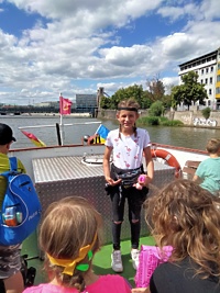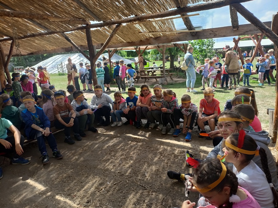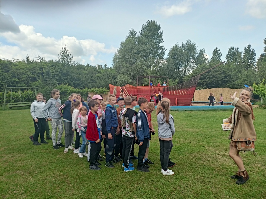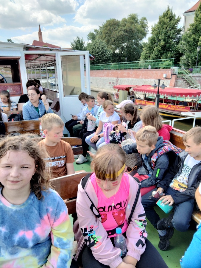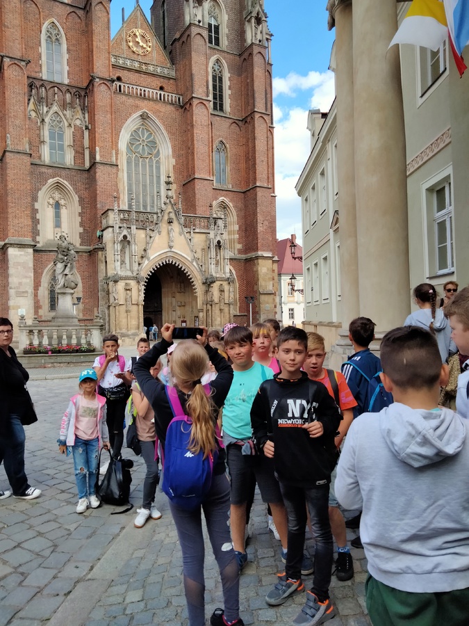 Pierwszym punktem programu wycieczki był pobyt w Indiańskiej Wiosce Pocahontas. Uczniowie pod opieką przewodników ubranych w stroje indiańskie zostali przyjęci do szczepu indiańskiego i wzięli udział w atrakcyjnych grach i zabawach. Przygotowany program uczył szacunku do przyrody, życia w zgodzie z naturą oraz współpracy w grupie. Strzelanie z łuku, bieg po labiryncie, rzut do celu, tropienie zwierząt, przeciąganie liny to tylko niektóre z zabaw pozwalające uczniom zdobyć kolejne sprawności. Pełni dobrej energii trzecioklasiści udali się na posiłek, a potem płynęli statkiem po Odrze. Podczas trwającego 50 minut rejsu podziwiali Wrocław z innej perspektywy. Ostatnim punktem programu wycieczki był spacer po Ostrowie Tumskim i zwiedzanie Katedry Św. Jana Chrzciciela.
