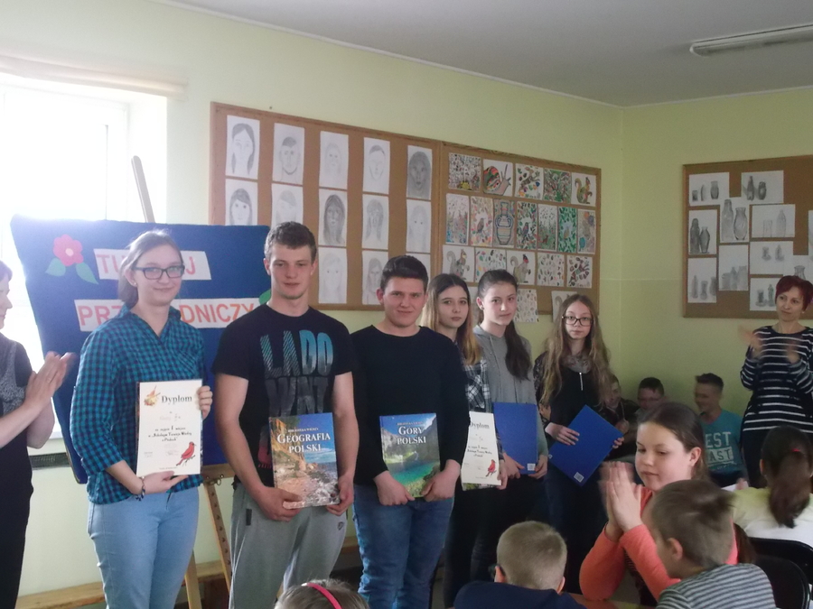 Corocznie w kwietniu w Zespole Szkół w Trzcinicy obchodzony jest Tydzień Przyrodniczy, w ramach którego podejmowane są różnorodne działania ekologiczne i prozdrowotne. Zapoznanie z tematami, hasłami przewodnimi i najważniejszymi zagadnieniami odbyło się poprzez audycje tematyczne. Propagując zdrowy tryb życia uczniowie szkoły podstawowej zorganizowali wystawę prac pt. „Witaminowy ludzik”. Prace wykonane z owoców i warzyw zachwycały pomysłowością i oryginalnością. Barwnie prezentowała się również wystawa zdjęć samodzielnie wykonanych sałatek owocowych i warzywnych oraz zamieszczonych obok przepisów na ich wykonanie. Ważnym punktem obchodzonego Dnia Zdrowia było spotkanie z lekarzem – panią Marią Lentas, która zwróciła uwagę na ważne aspekty zdrowego trybu życia oraz przybliżyła uczniom zagrożenia związane z zachorowaniem na cukrzycę. Obchody Dnia Ziemi rozpoczęły się spotkaniem z panem Krzysztofem Jelonkiem – pasjonatem i znawcą fauny i flory naszych lasów. Najmłodsi uczniowie mogli posłuchać barwnych opowieści i obejrzeć prezentowane eksponaty. W ramach działań ekologicznych odbył się coroczny Turniej Wiedzy o Ptakach. W zmaganiach wzięły udział trzyosobowe zespoły z poszczególnych klas. Uczniowie wykazali się szeroką wiedzą na temat występowania, zwyczajów i wyglądu ptaków naszej okolicy. Konkurs został rozegrany w dwóch kategoriach wiekowych: Szkoły Podstawowe i Gimnazjum. Po zaciętych zmaganiach pierwsze miejsce wśród uczniów szkoły podstawowej zajęła reprezentacja klasy IV w składzie: Patrycja Biegańska i Karolina Dłubak a wśród gimnazjum po kilkuminutowej dogrywce, która nie przyniosła rozstrzygnięcia postanowiono przyznać dwa pierwsze miejsca dla reprezentacji klasy Ia w składzie: Julita Krowiarz, Weronika Kruber i Anna Kurek oraz klasy IIIa w składzie: Hubert Grygier, Dawid Mainka i Julia Michlak. Zwycięzcy otrzymali nagrody książkowe a wszyscy uczestnicy dyplomy i słodkie niespodzianki. Nad prawidłowym przebiegiem rywalizacji czuwały panie Ewa Gaze, Jolanta Janicka, Grażyna Kłoczaniuk. W nawiązaniu do tegorocznego hasła obchodów Dnia Ziemi „Palący Temat – Niska Emisja” wykonano gazetkę pt. „Czyste powietrze – zdrowe życie” oraz umieszczono w różnych miejscach w szkole tematyczne wierszyki. Na korytarzu szkolnym można było podziwiać prace plastyczne uczniów pt. „Czego boi się Ziemia?” oraz wystawę „Wiosennych bukietów z odpadów”, która nawiązywała do działań recyklingowych w naszej szkole. Do działań takich należą: zbiórka zużytych baterii, zbiórka makulatury i plastikowych nakrętek. Działania ekologiczne i prozdrowotne w naszej szkole mają uświadomić uczniom niebezpieczeństwo jakie niesie ze sobą rozwój cywilizacji niezgodny z prawami natury i zwrócić uwagę na konieczność dbania zarówno o zdrowie fizyczne jak i psychiczne. Organizatorami Dnia Zdrowia i Dnia Ziemi były nauczycielki przyrody, geografii i biologii panie: Jolanta Janicka, Grażyna Kłoczaniuk, Aneta Ogonowska–Jurczenia, Katarzyna Zagórna.
