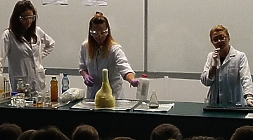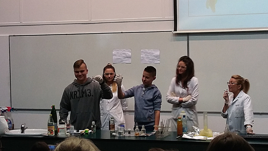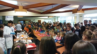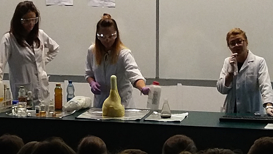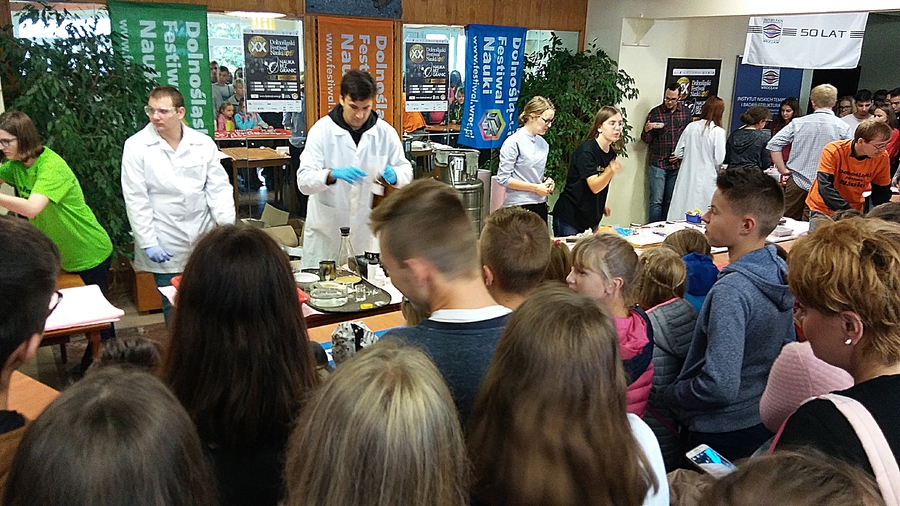 25 września 2017r. uczniowie Szkoły Podstawowej i Gimnazjum w Trzcinicy wraz z nauczycielami fizyki, chemii i języka polskiego: Mariolą Krawczyk, Grażyną Kłoczaniuk i Bożeną Mierzwiak wzięli udział w XX Dolnośląskim Festiwalu Nauki. Tegoroczne hasło festiwalu brzmiało „Nauka bez granic”. Organizatorami tego wydarzenia były lokalne jednostki PAN oraz wrocławskie uczelnie, które otwarły swoje sale wykładowe, pracownie i laboratoria dla zainteresowanych nauką, sztuką i kulturą. Dzięki nim uczniowie naszej szkoły mieli możliwość w atrakcyjnej i zrozumiałej formie poznać różne tajniki wiedzy z biologii, chemii i fizyki. W Instytucie Niskich Temperatur i Badań Strukturalnych PAN uczniowie wysłuchali wykładu pt. „Jak działa magnes?” oraz mogli zaobserwować ciekawe fizyczne pokazy na zajęciach pt. „Doświadczenia fizyczne z bliska” Na Wydziale Chemii Politechniki Wrocławskiej wysłuchali ciekawego wykładu pt. „Komórka w kolorach tęczy”, obserwowali pasjonujące doświadczenia z chemii oraz wzięli udział w zajęciach laboratoryjnych pt. „W świecie pokazów chemicznych”. Uczniowie wrócili zadowoleni i pełni wrażeń z postanowieniem udziału w przyszłorocznym XXI Dolnośląskim Festiwalem Nauki.