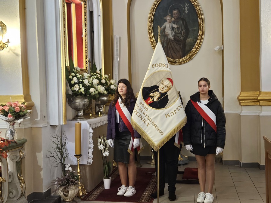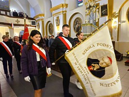 Jak co roku, 11 listopada włączyliśmy się w gminne obchody Narodowego Święta Niepodległości. W uroczystości wziął udział poczet sztandarowy oraz delegacje uczniów i nauczycieli. Obchody rozpoczęła uroczysta Msza św. w intencji Ojczyzny, którą odprawił ks. kanonik Grzegorz Mituła.