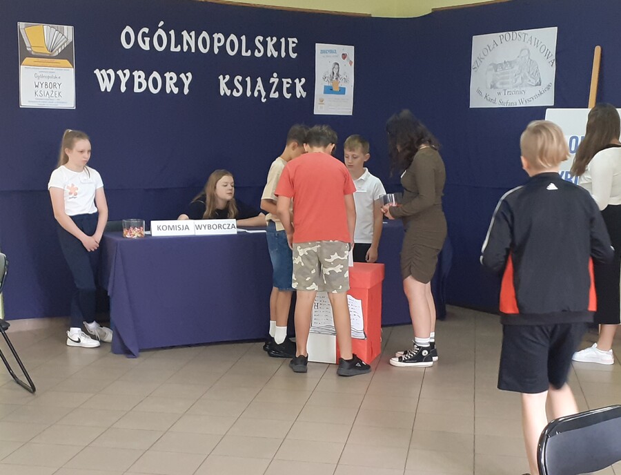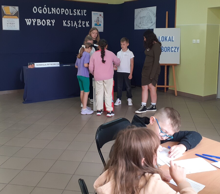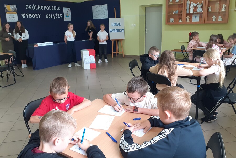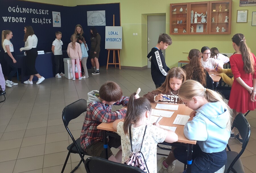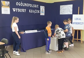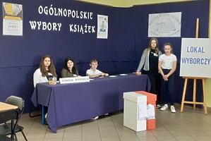 Wybory najciekawszych książek cieszyły się w naszej szkole dużym powodzeniem. Wzięło w nich udział 191 uczniów z klas I – VIII. Wszyscy uczestniczący w wyborach obdarowani zostali słodkim upominkiem. Nad przebiegiem głosowania czuwała komisja wyborcza w składzie: pani Ewa Gaze -nauczyciel bibliotekarz oraz członkowie Samorządu Uczniowskiego: Alicja Pietrzak, Amelia Kaczmarek, Maria Stefańska, Maja Kozikowska i Filip Stasiak.