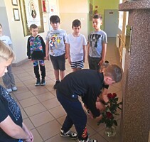 Uczniowie klasy IIa w imieniu wszystkich złożyli kwiaty przed popiersiem bł. Kard. Stefana Wyszyńskiego.