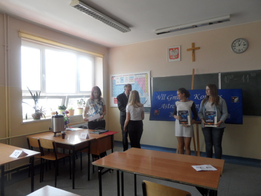 Na zakończenie konkursu Wójt Gminy Trzcinica Grzegorz Hadzik wręczył zwycięzcom nagrody książkowe, a wszystkim uczestnikom pamiątkowe dyplomy i życzył sukcesów w Wojewódzkim Konkursie Astronomicznym, który odbędzie się 25 kwietnia 2016r. w Potarzycy.