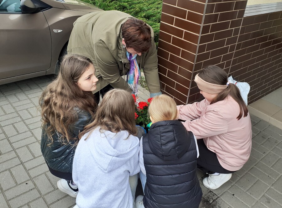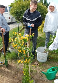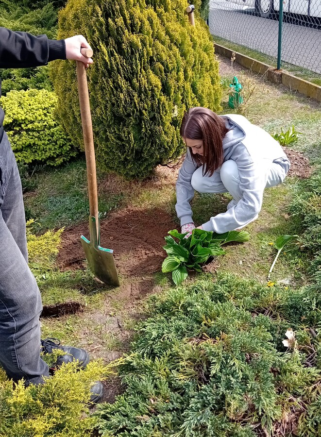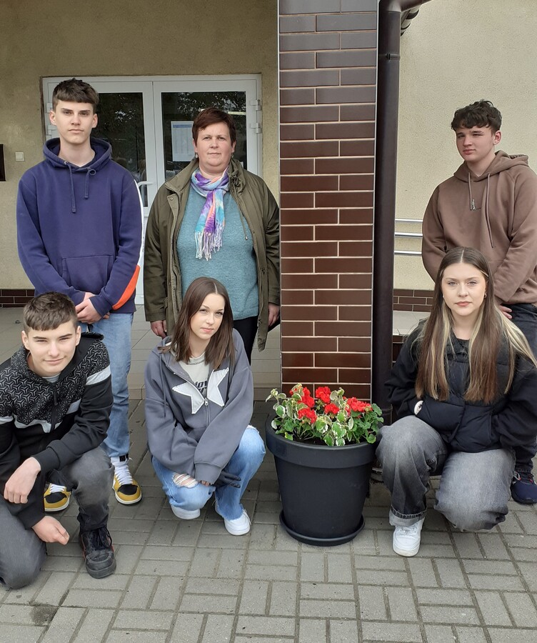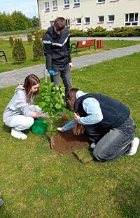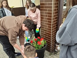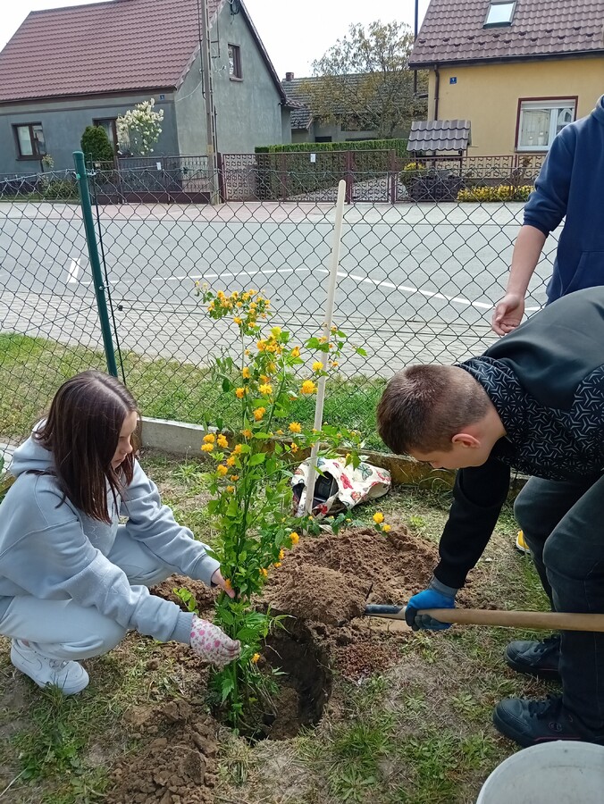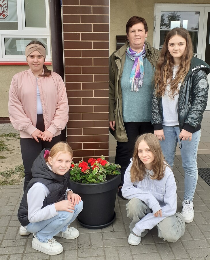 Natomiast 23 kwietnia uczniowie klasy VIII i członkowie Koła Geograficznego zasadzili na terenie wokół budynku szkoły kilka gatunków roślin. Wśród nich znajdowały się dwie odmiany bzu, Funkia T-REX, krzew Keria japońska, Niezapominajki , Hiacynty, Mieczyk Abisyński, Liatria fioletowa i prymule.