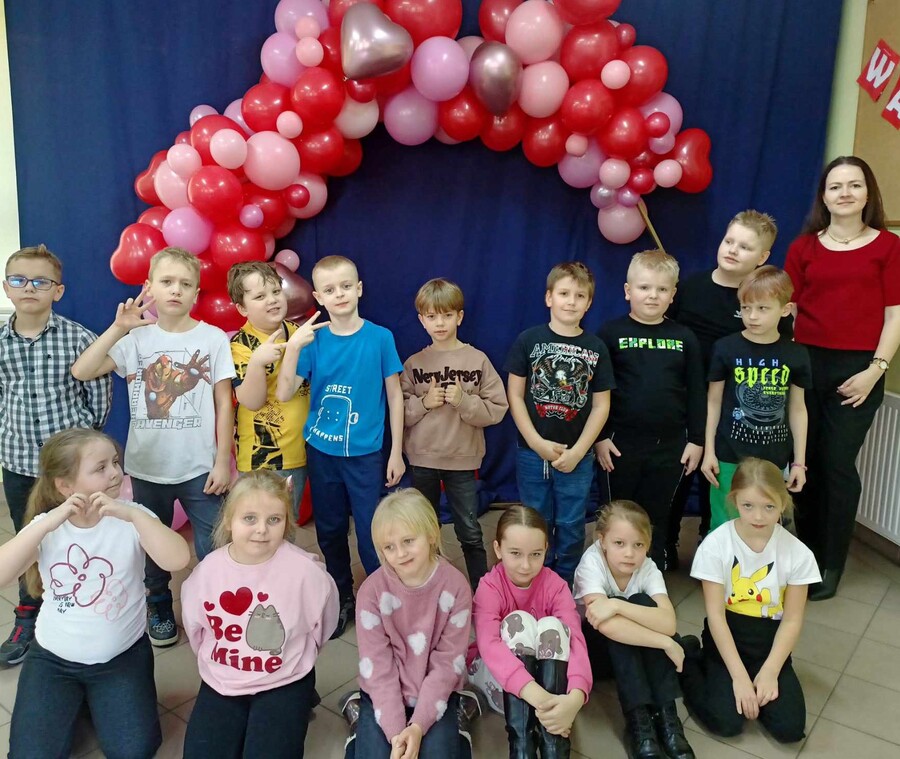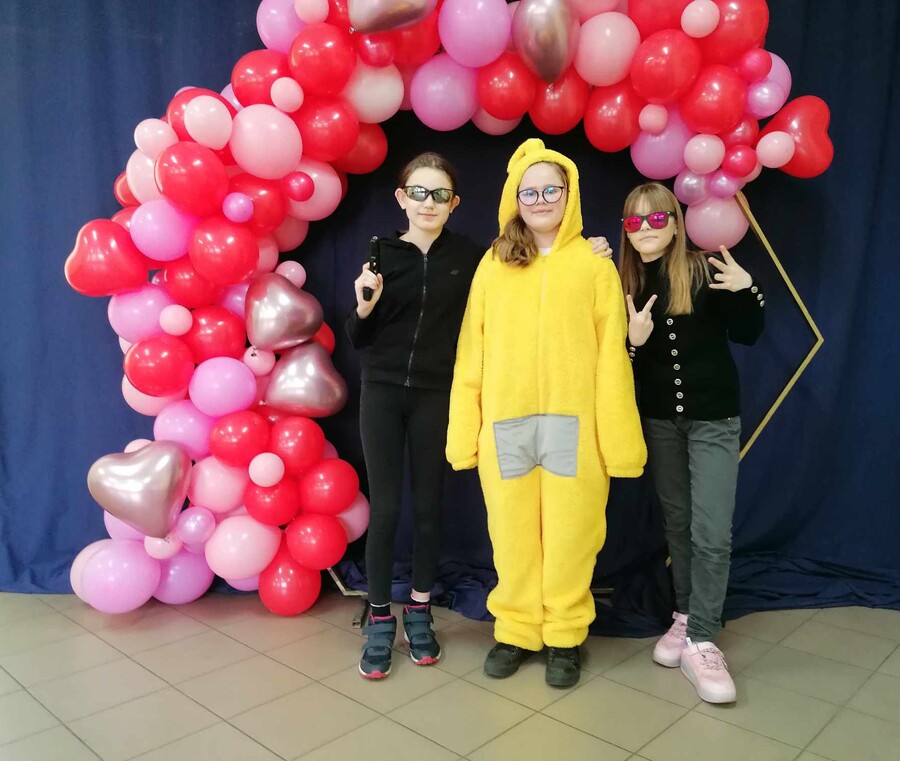 Dodatkową atrakcją była ścianka walentynkowa, która stała się swoistą foto-budką i sprawiła uczniom wiele radości.