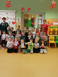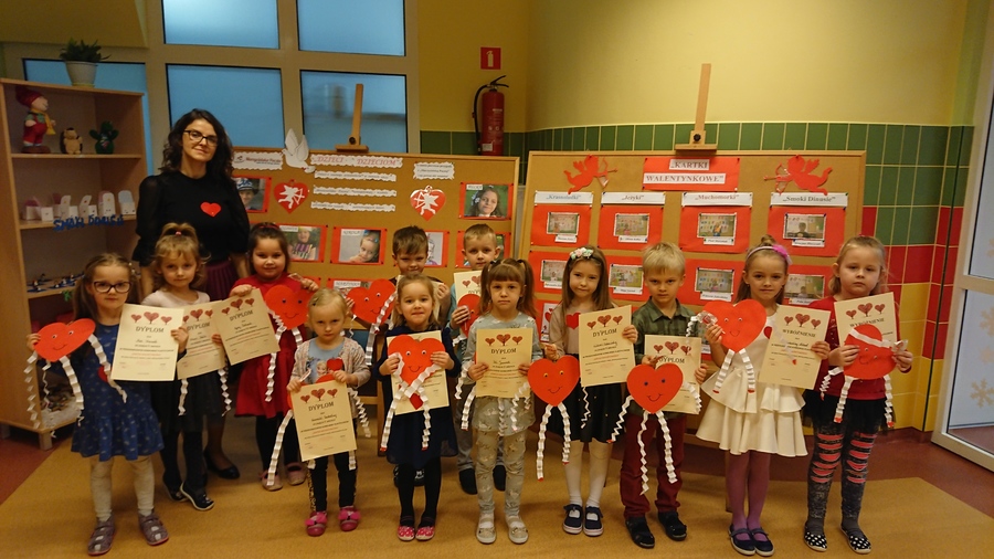 W tym dniu został rozstrzygnięty konkurs pt. „Kartka Walentynkowa”. Jego laureaci (dwunastu przedszkolaków) otrzymali dyplomy, upominki i wylosowali uczestnika z „Marzycielskiej Poczty”, do którego miała trafić walentynkowa kartka. Jeszcze tego dnia walentynkowe życzenia zostały wysłane. Wszystkim uczestnikom konkursu dziękujemy, a laureatom serdecznie gratulujemy!!!