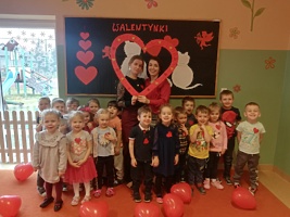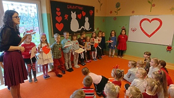 Walentynki to dzień dobrych uczuć, okazja do obdarowania innych miłymi słowami, kartkami, prezencikami. W tym dniu dzieci z Przedszkola w Trzcinicy miały mnóstwo ciekawych zajęć i zabaw, wykonały prace plastyczne związane z tym tematem, tańczyły, a także zostały obdarowane serduszkowymi balonami, które ufundowała Rada Rodziców.