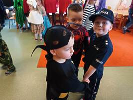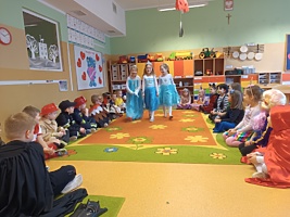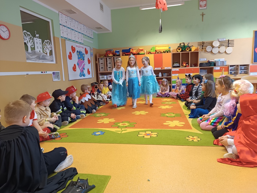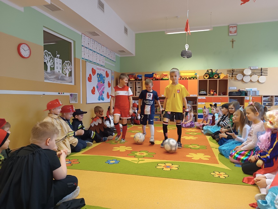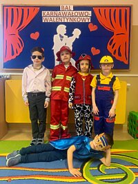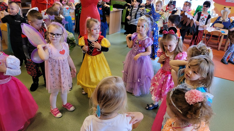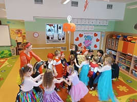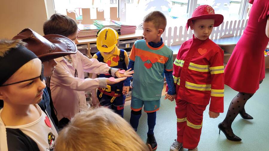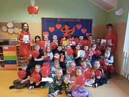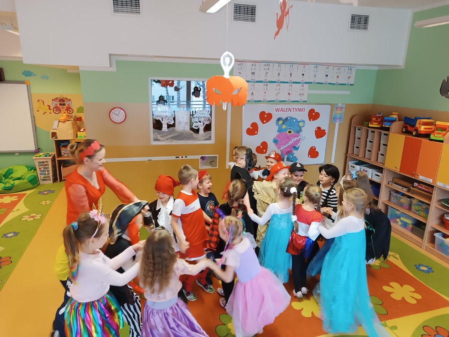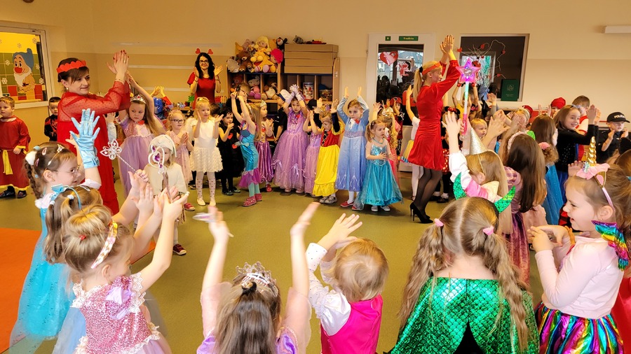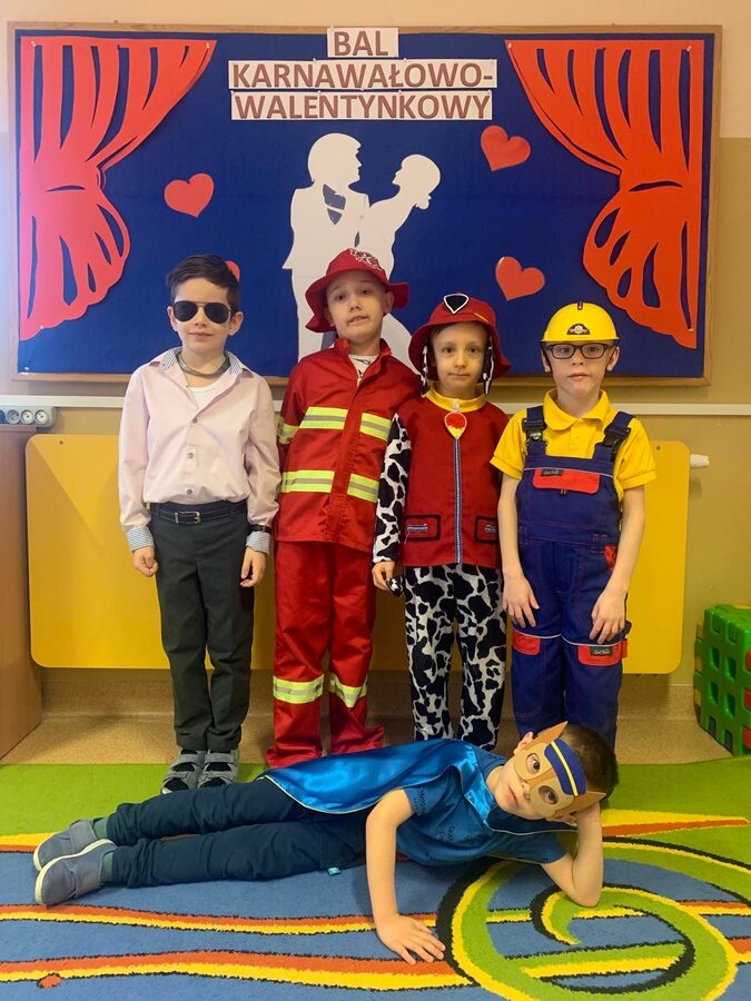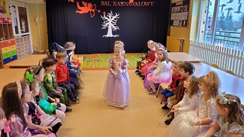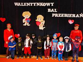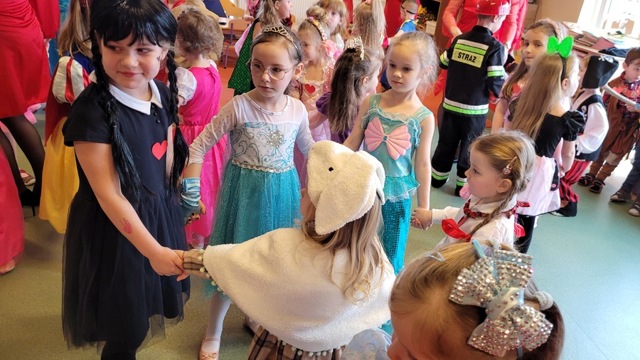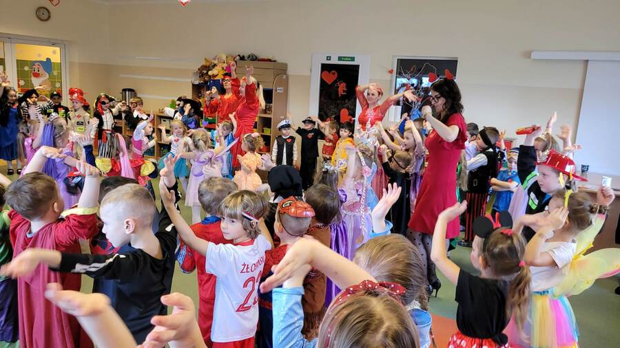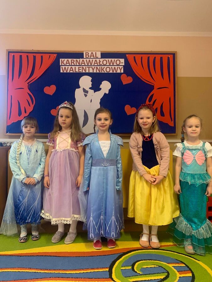14 lutego 2023r w przedszkolu połączono obchody dnia zakochanych z balem karnawałowym. Najpierw dzieci świętowały w swoich grupach gdzie prezentowały przebrania. Wspaniałe stroje, w których widoczny był również akcent „walentynkowy”, przygotowali rodzice. Przedszkolaki wspaniale się bawiły, a punktem kulminacyjnym zabawy był wystrzał walentynkowej petardy i otwarcie poczty walentynkowej, z której „Walentynkę” otrzymał każdy uczestnik zabawy.