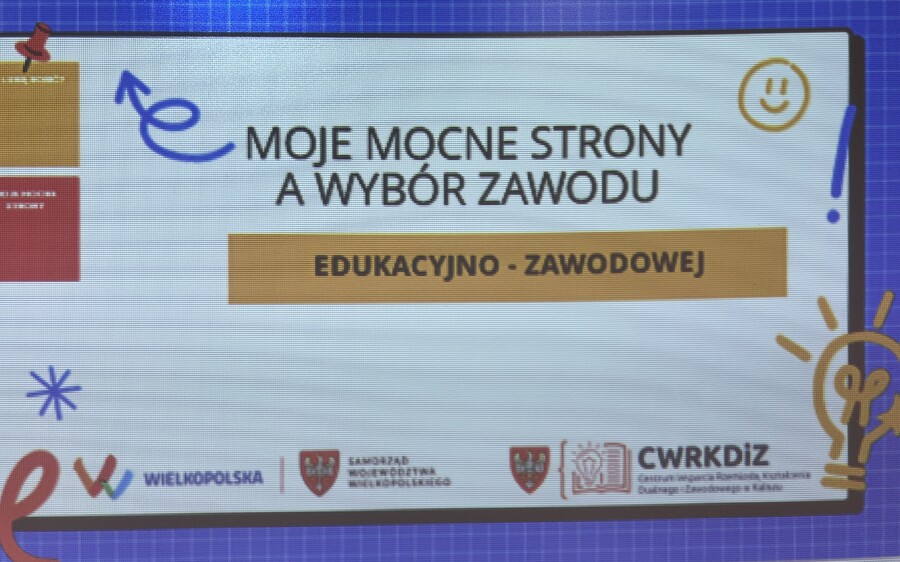 7 stycznia uczniowie klas VII i VIII wzięli udział w warsztatach z tematyki zawodoznawstwa. Zajęcia zostały przeprowadzone przez doradczynię zawodową panią Jolantę Łaźniak z Centrum Wsparcia Rzemiosła, Kształcenia Dualnego i Zawodowego w Kaliszu. Uczniowie klasy VII poruszali się w temacie: "Samoocena - moje mocne i słabe strony", natomiast uczniowie klas VIII pracowali w tematyce: „Poznajemy specyfikę różnych zawodów”