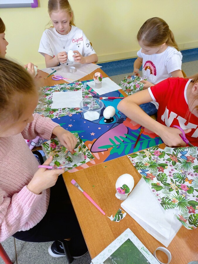 Podczas omawiania tradycji wielkanocnych stykamy się mocno z rzeczywistością rodzinnego, zespołowego tworzenia ozdób świątecznych odnoszących się do symboliki nadchodzących Świąt.