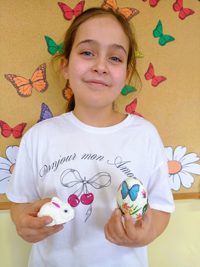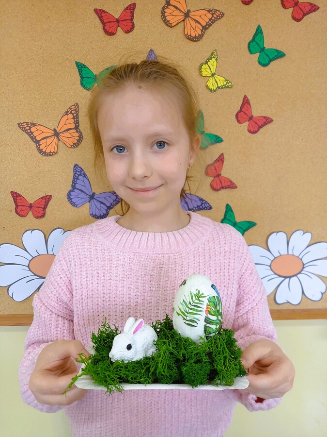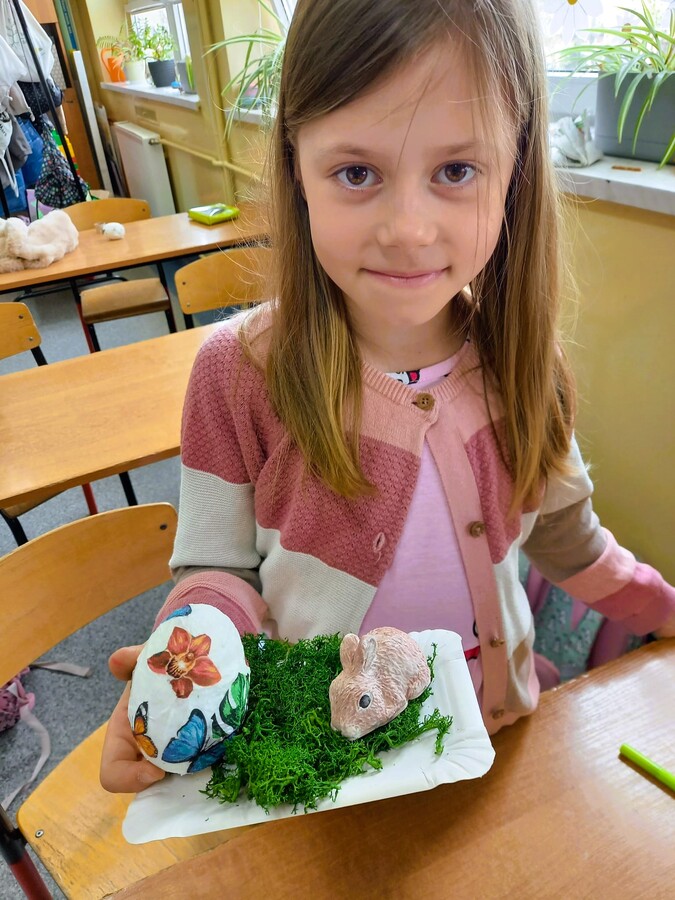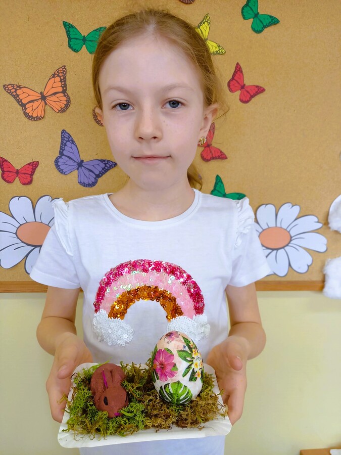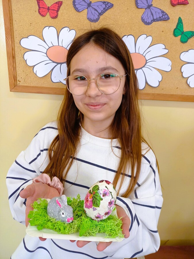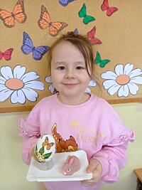 W tym celu dzieci wykonały zajączka z gliny plastycznej oraz pisankę uproszczoną techniką decoupage.