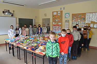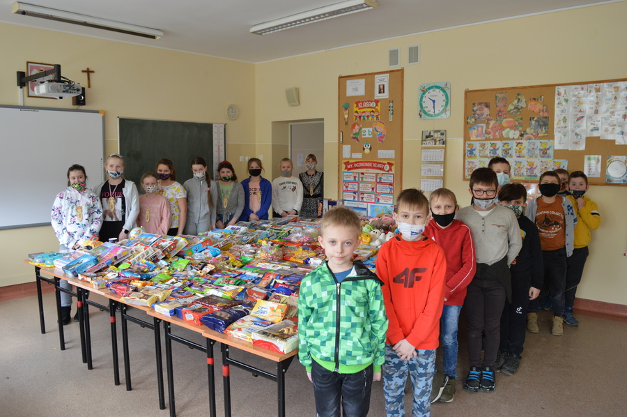 Uczniowie Szkoły Podstawowej im. Kard. Stefana Wyszyńskiego w Trzcinicy wiedzą o tym bardzo dobrze i zawsze w okresie Adwentu i Wielkiego Postu angażują się w akcje charytatywne. Podczas tegorocznej akcji wielkopostnej zorganizowano zbiórkę pluszaków, gier edukacyjnych i słodyczy dla dzieci z domów dziecka. Zaangażowała się cała społeczność szkolna: uczniowie, rodzice, nauczyciele i pracownicy szkoły. Zebranych darów serca było bardzo dużo. Przy segregowaniu i pakowaniu darów pomagali uczniowie klasy III i jednogłośnie stwierdzili, że pomaganie jest FAJNE.