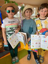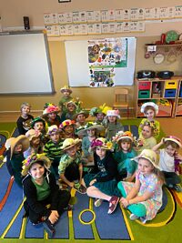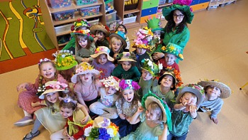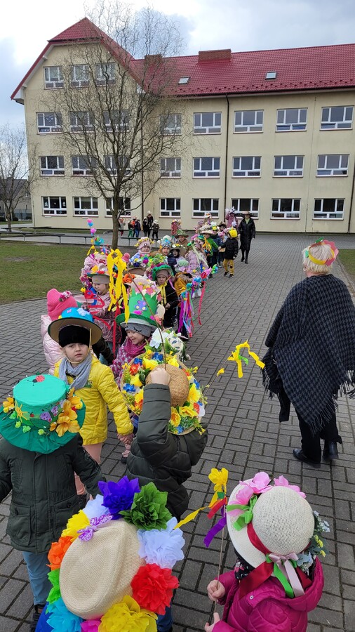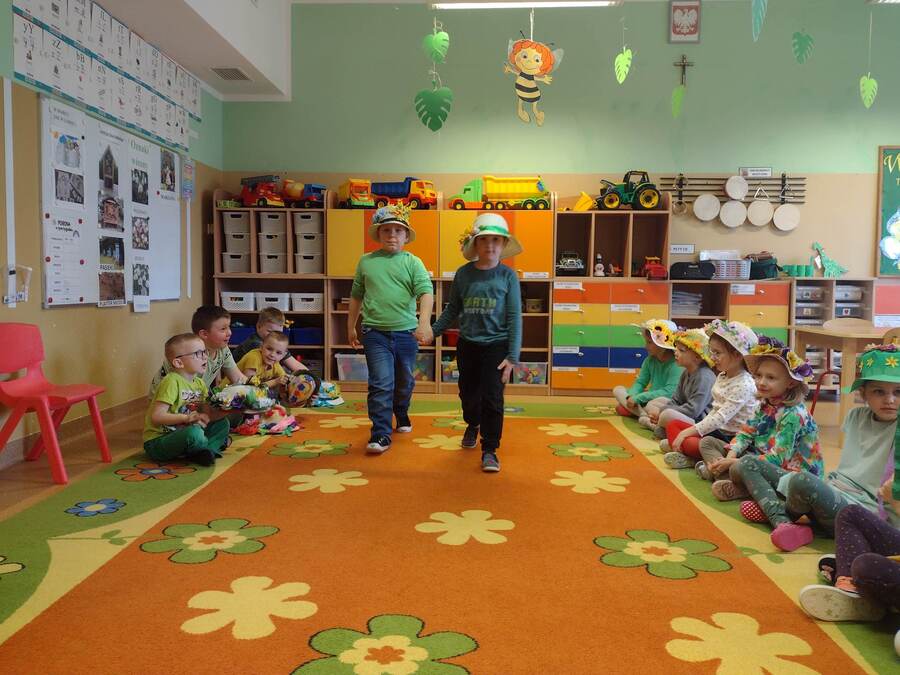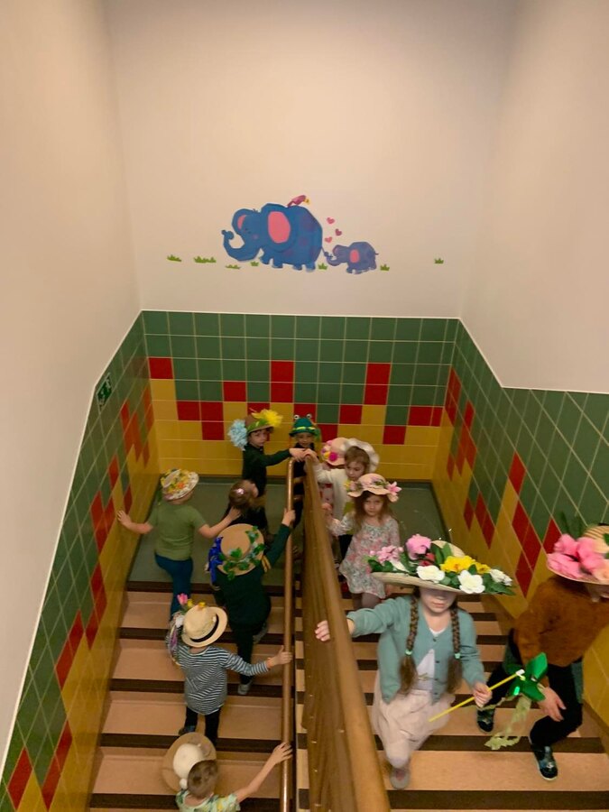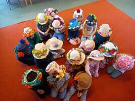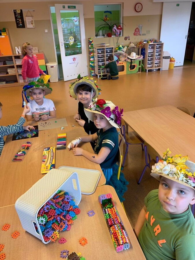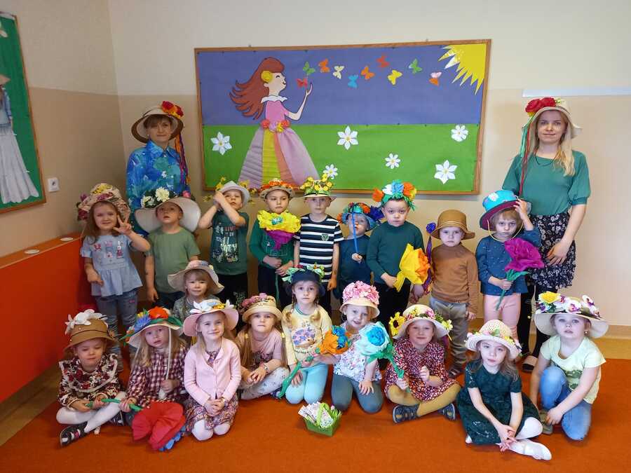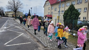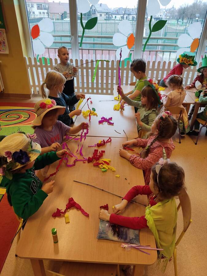 Dzieci z wszystkich grup przedszkolnych w kolorowych kapeluszach powitały wiosnę. 21 marca 2023roku roześmiana gromada spacerowała ulicami Trzcinicy szukając zwiastunów nowej pory roku. Dzieci śpiewały wiosenne piosenki, grały na instrumentach i machały przechodniom kolorowymi gaikami.