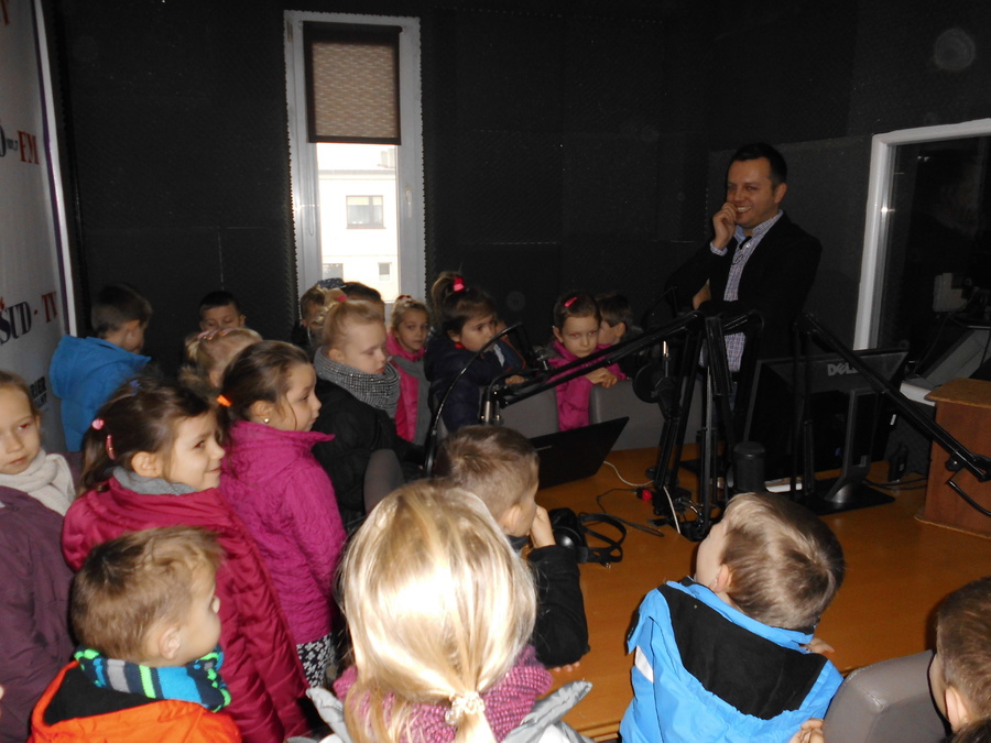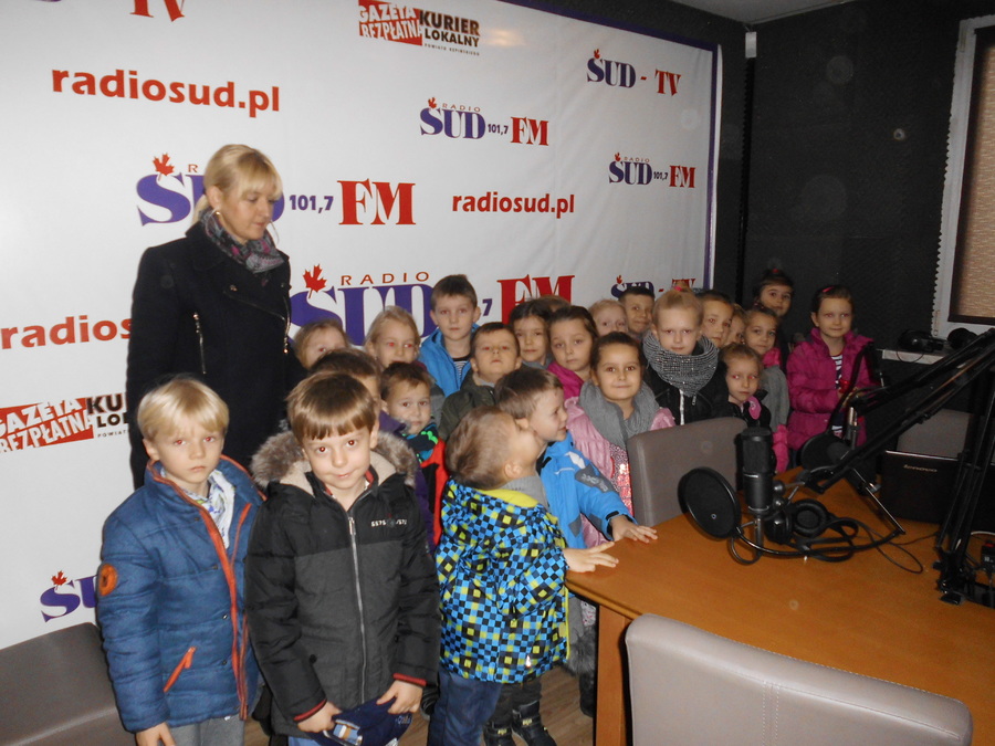 - Zwiedzanie radia SUD, w którym przywitał wszystkich redaktor naczelny Michał Zaczyk a przewodnikiem po pomieszczeniach studyjnych był redaktor Maciej Tettling. Wszyscy uczestnicy wycieczki otrzymali pamiątkowe smycze radia SUD 101,7FM a panie z kuchni przedszkolnej specjalne pozdrowienia wyemitowane tego dnia na antenie radiowej.