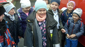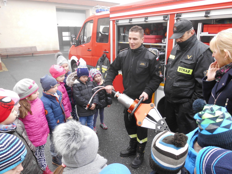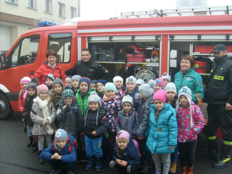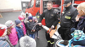 - Wizyta w Zawodowej Straży Pożarnej, w której to aspirant sztabowy Piotr Baliński bardzo ciekawie opowiadał i oprowadzał po znajdujących się w budynku pomieszczeniach. Największym zainteresowaniem przedszkolaków cieszył się garaż i znajdujące się w nim pojazdy strażackie a szczególnie ten największy z rozsuwaną drabiną i koszem. Przez kilka chwil dzieci przymierzając ubrania i sprzęty mogły poczuć się jak prawdziwi Strażacy. Organizatorami wycieczki były nauczycielki przedszkola Panie Aneta Jędryca i Mariola Bednarek przy wsparciu rodziców z obu grup przedszkolnych.