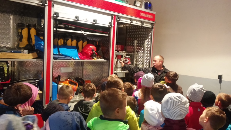 W dniu 12 października 2016r. uczniowie klasy I, IIIa oraz IIIb szkoły podstawowej udali się na wycieczkę do jednostki Ochotniczej Straży Pożarnej w Trzcinicy. Spotkali się z panem Zbigniewem Grześniakiem, który opowiedział dzieciom o pracy strażaków ochotników oraz zaprezentował wozy strażackie i ich wyposażenie. Wszystkie informacje i oglądane sprzęty wywarły na uczniach duże wrażenie.