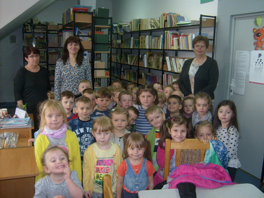 Dnia 5 maja 2017 roku dzieci z grup „Krasnoludki” i „Jeżyki” odwiedziły bibliotekę szkolną w Zespole Szkół w Trzcinicy. Bibliotekarka zapoznała dzieci z księgozbiorem i omówiła zasady funkcjonowania biblioteki. Oprócz tego pokazała dzieciom kącik informatyczny, z którego mogą korzystać czytelnicy. Przedszkolaki podziękowały pani Ewie Gaze za przekazane informacje.