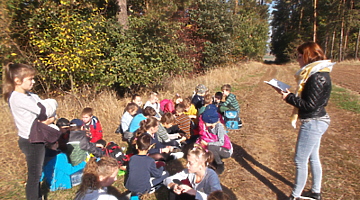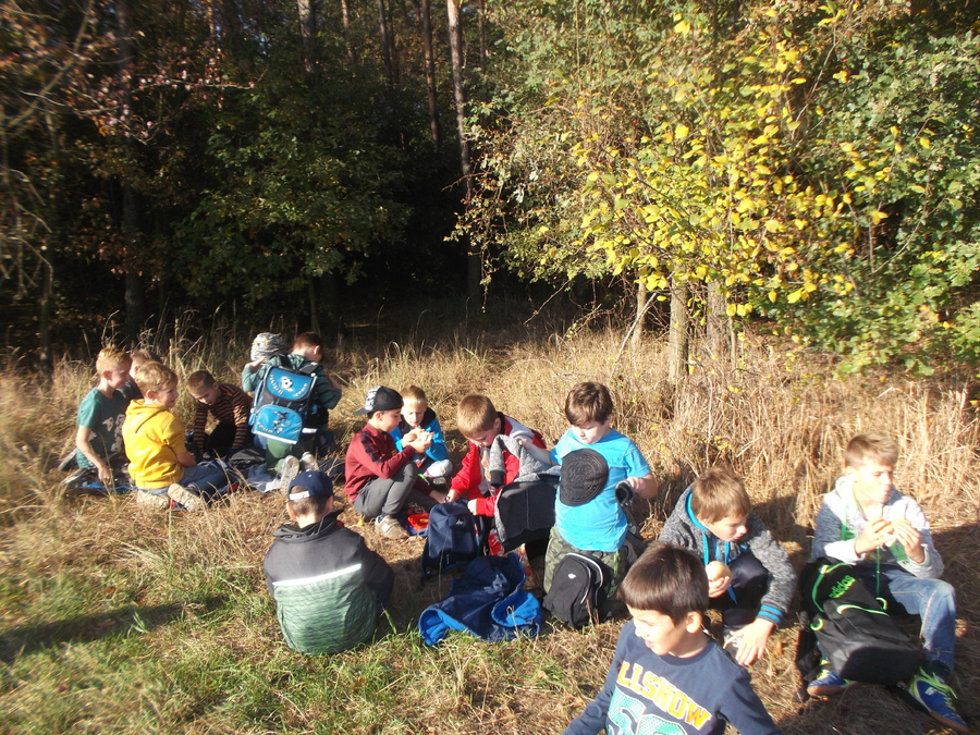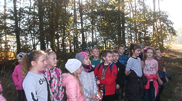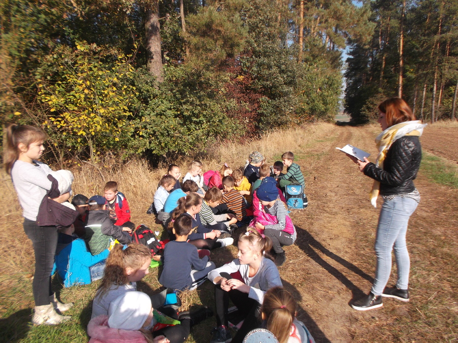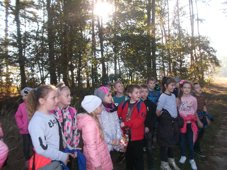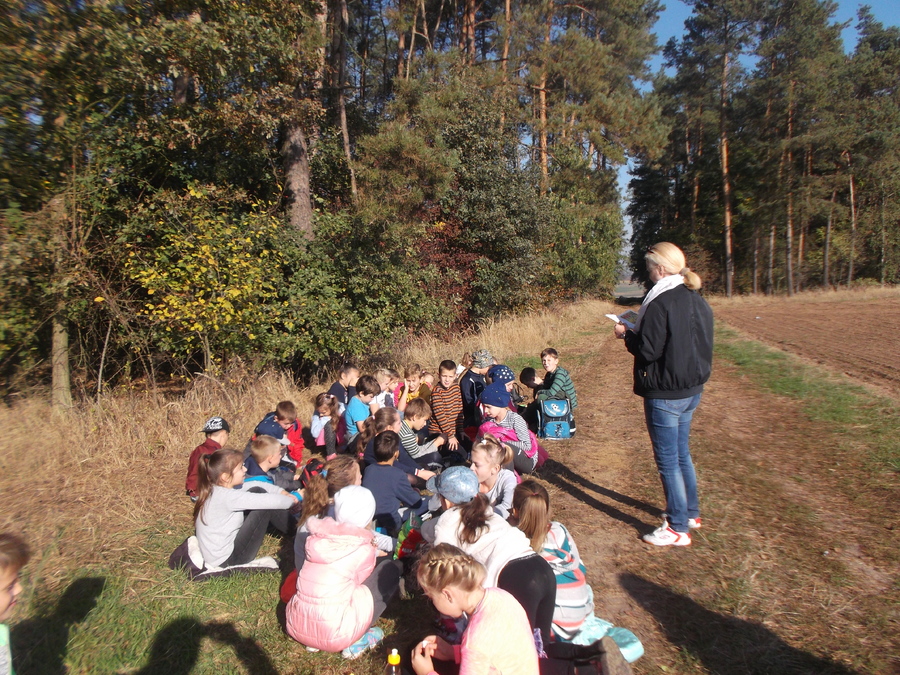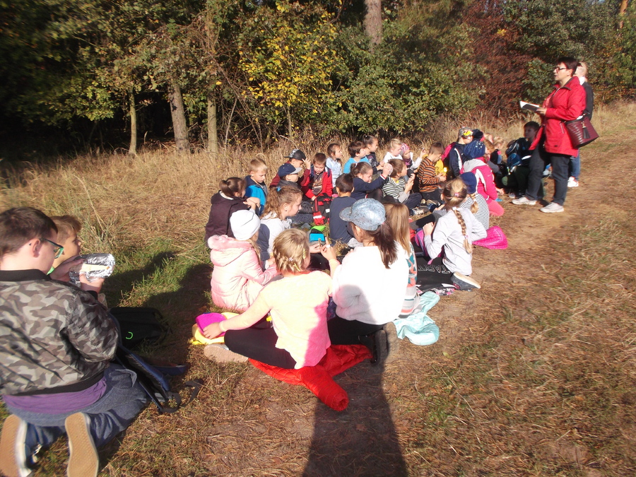 10 października uczniowie klasy II i III udali się na wycieczkę do lasu. Była to dobra okazja, aby uczcić Święto Drzewa. Przy pięknej pogodzie dzieci spacerowały leśnymi dróżkami, zbierały szyszki, żołędzie i kolorowe liście. Uczniowie poznali warstwową budowę lasu, rozpoznawali gatunki drzew i krzewów, słuchali leśnych odgłosów. Zmęczeni nieco spacerem, usiedli pod drzewami, gdzie po śniadaniu odbyło się „głośne czytanie na leśnej polanie”. Nauczycielki przeczytały dzieciom opowiadanie L. Krzemienieckiej pt. „O gościach, co nie przyszli na ucztę”. Wycieczka się udała i wszyscy zadowoleni wrócili do szkoły. Po powrocie do klas uczniowie wykonali prace z wykorzystaniem zebranego na wycieczce materiału przyrodniczego.