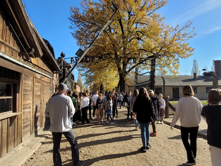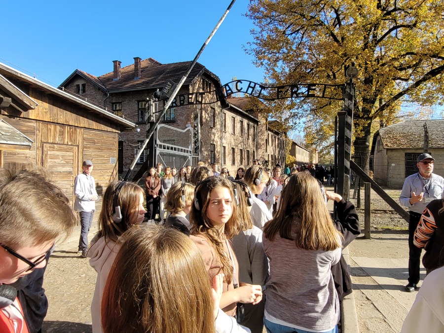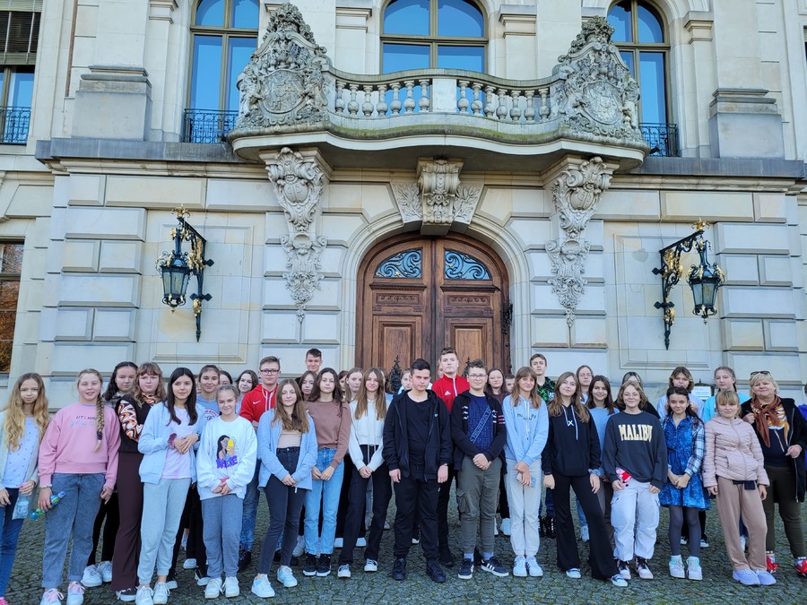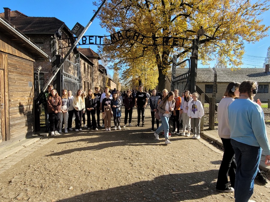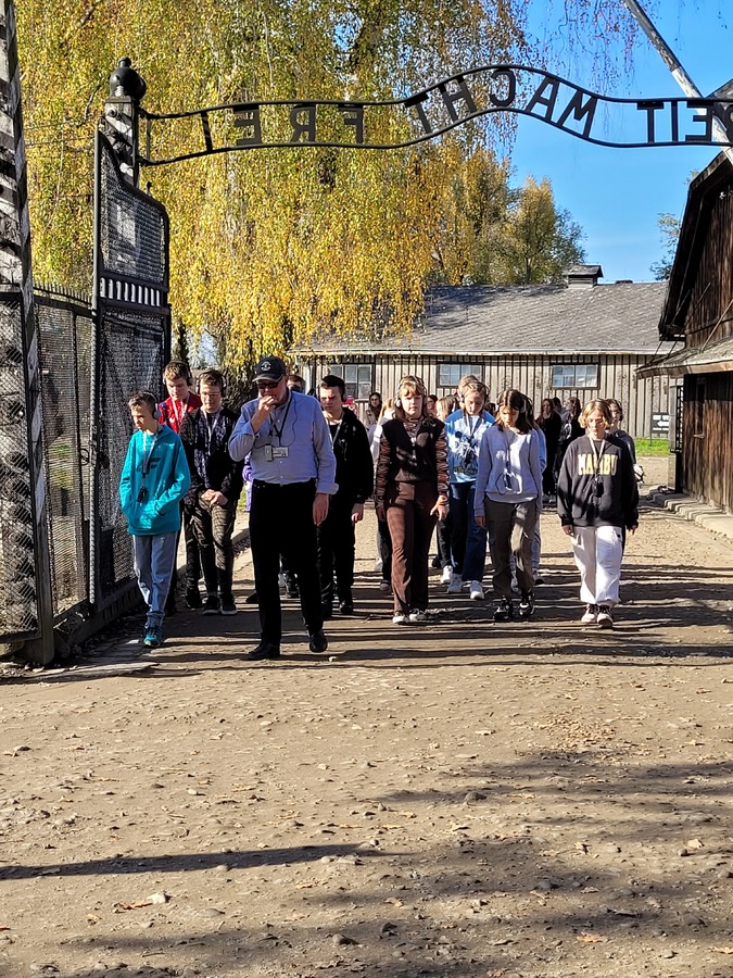 27 października 2022r. uczniowie klas VIII i VI wzięli udział w jednodniowej wycieczce do Pszczyny i Oświęcimia. Najpierw zwiedzili przepiękny neobarokowy pałac w Pszczynie należący do rodu Hochbergów. Uczniowie podziwiali przepiękne wnętrza pałacowe oraz zapoznali się z historią tego pałacu. To tutaj w czasie I wojny światowej mieściła się siedziba sztabu wojsk niemieckich na front wschodni. Tutaj też w 1916 roku podpisano słynny Akt 5 listopada, będący zapowiedzią przyszłej Polski. Z Pszczyny uczniowie wraz z opiekunami Jolantą Jelonek, Lidią Jerczyńską i Łukaszem Bartkowiakiem udali się do Muzeum martyrologii w Oświęcimiu. W ciszy i w pełnym skupieniu uczniowie przemierzali teren obozu słuchając o okrucieństwach, jakich dopuścili się niemieccy oprawcy. Z Obozu Auschwitz, uczniowie udali się do obozu w Birkenau, tutaj mieścił się obóz dla kobiet. Panowały w tym obozie jeszcze gorsze warunki niż w Auschwitz. W tym miejscu uczniowie zobaczyli pozostałości po piecach krematoryjnych, które Niemcy wysadzili w 1944 roku, aby zatrzeć ślady swojego ludobójstwa. Uczniowie podsumowując wycieczkę zgodzili się z opinią, że każdy Polak przynajmniej raz w życiu powinien te miejsca zwiedzić.