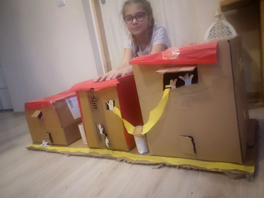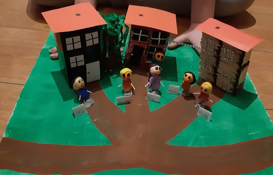 Uczniowie klasy III on-line odbyli wycieczkę śladami bohaterów książki „Dzieci z Bullerbyn”. Ich wyobraźnia i umiejętności manualne pozwoliły na stworzenie makiet Zagród: Południowej, Środkowej i Północnej w nowych odsłonach. Na uwagę szczególnie zasługuje różnorodność wykorzystanych materiałów.