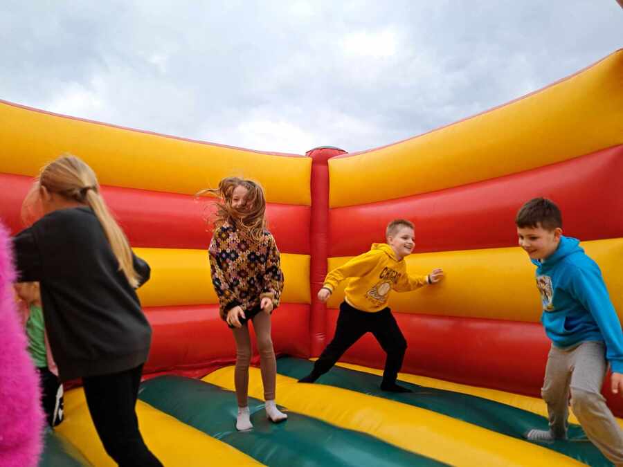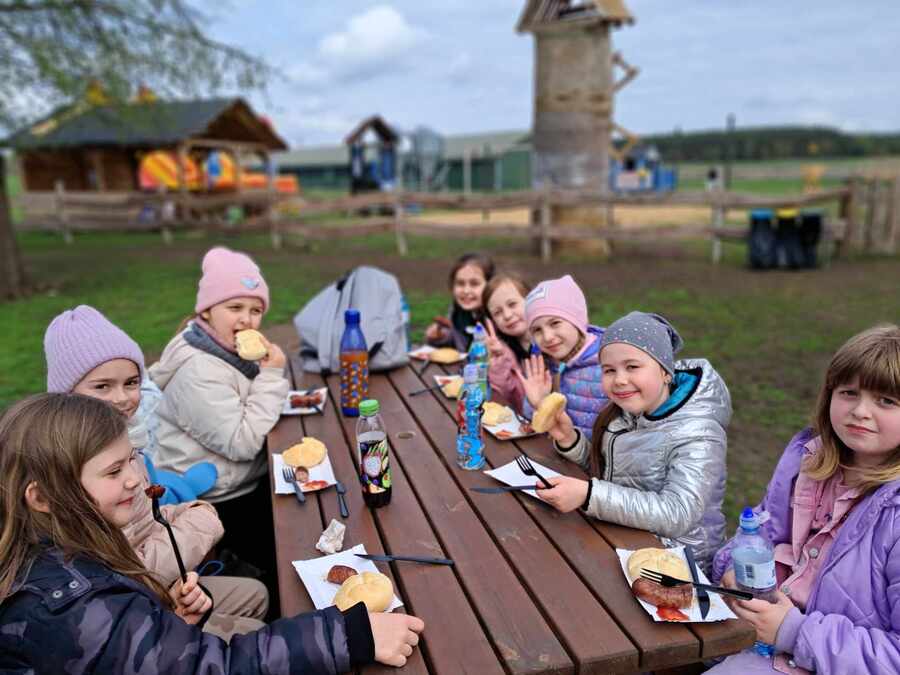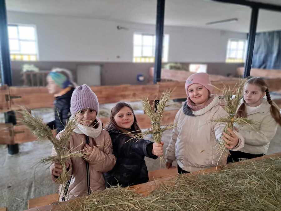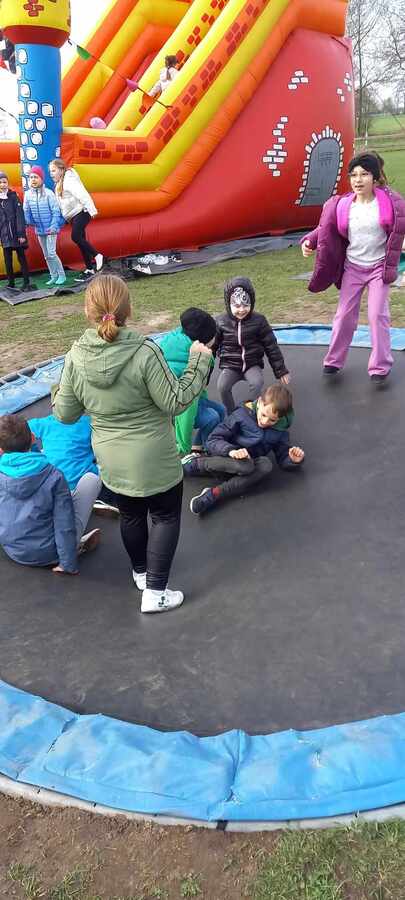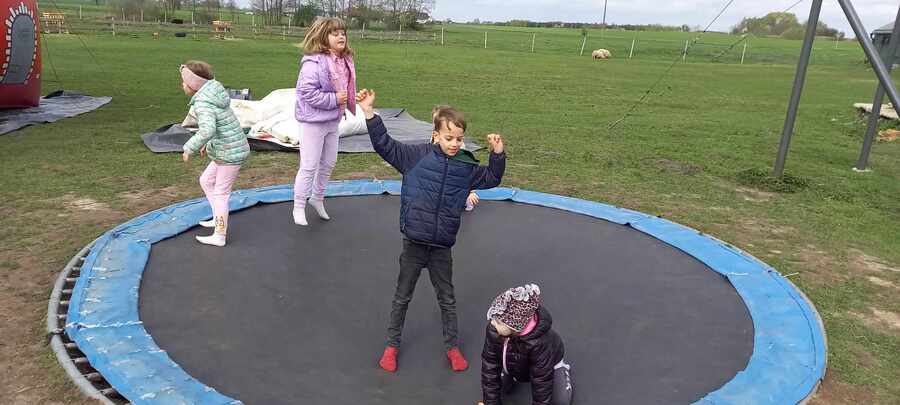 Wycieczkowicze mieli też chwilę wytchnienia podczas kreatywnych zajęć, gdzie tworzyli poświąteczne zające z siana i siali rzeżuchę. W trakcie pobytu na farmie ogromną atrakcją był było bezpośrednie przebywanie ze zwierzętami: alpakami, kozami, owcami, kucykiem, wielbłądem i osiołkiem. Był też czas na zupełne zmęczenie podczas korzystania z dmuchanych zamków, trampolin i zjazdu na tyrolce. Wycieczka była oczywiście świetną formą integracji.