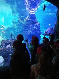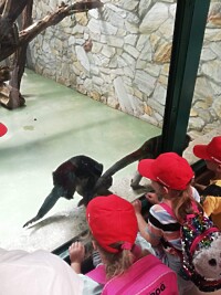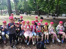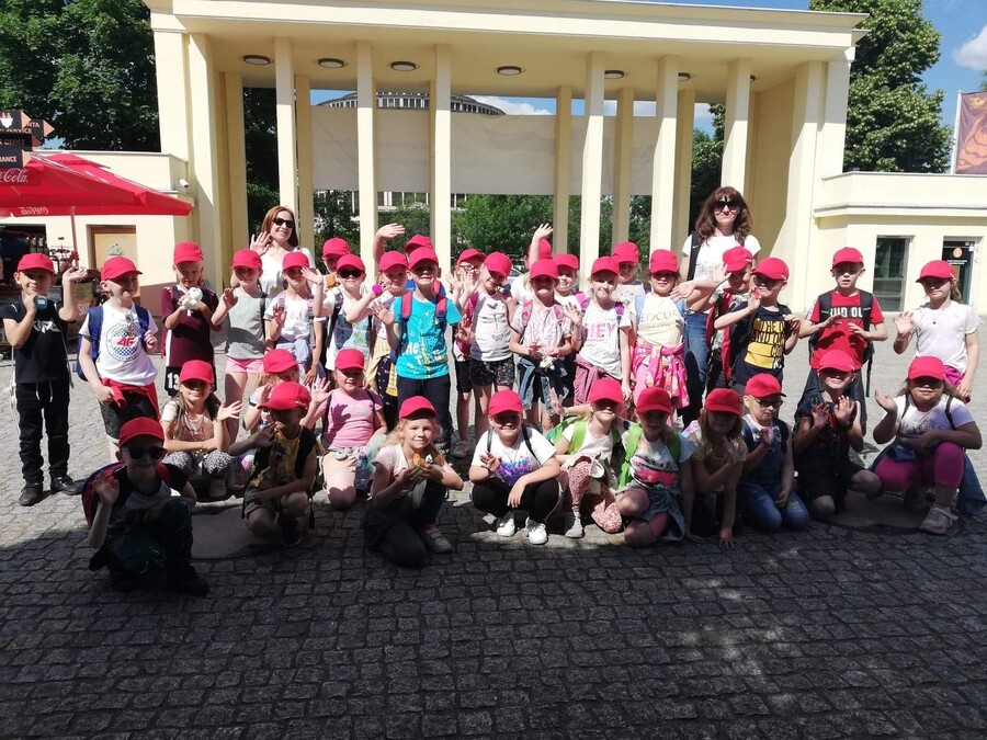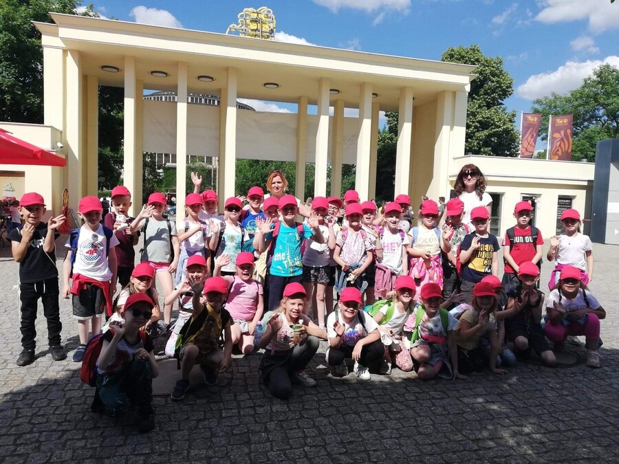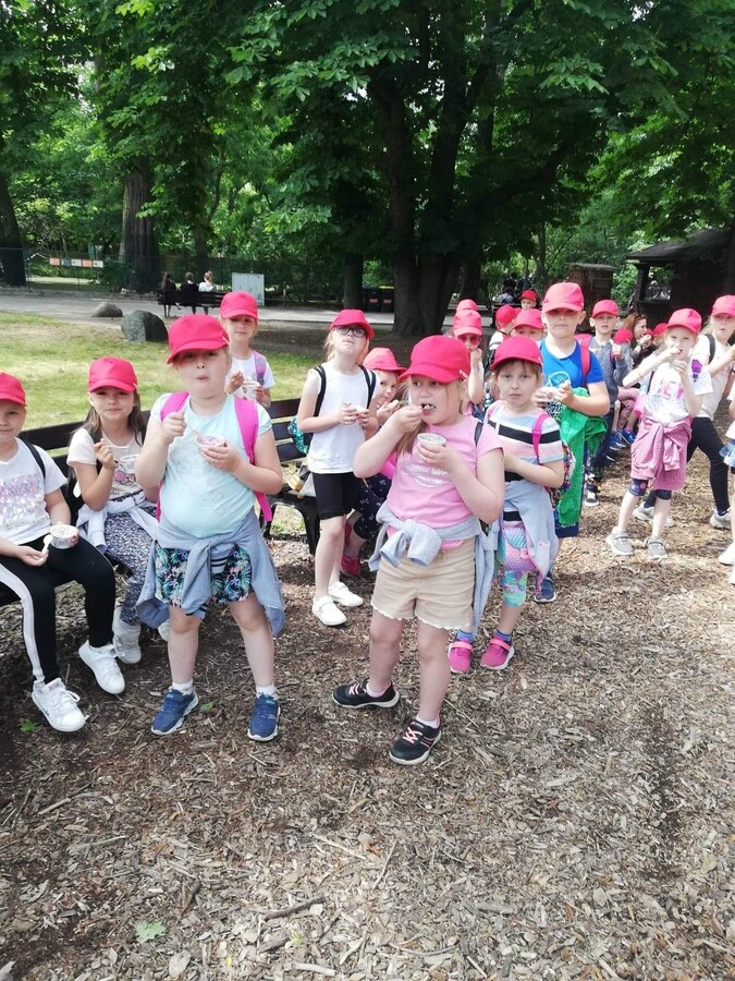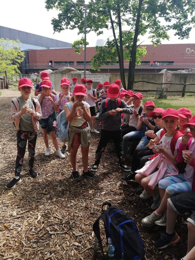 10 czerwca 2022r. uczniowie klas pierwszych wybrali się do wrocławskiego zoo. Podczas pobytu zwiedzali Afrykarium z edukatorem, poznali obyczaje żółwi, obserwowali zachowania różnych gatunków małp uczestnicząc w warsztatach „Małpie figle”. Przy okazji przyglądali się zachowaniom innych zwierząt napotkanych po drodze. Hitem wycieczki okazały się lody kulkowe o smaku gumy balonowej.