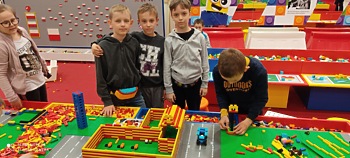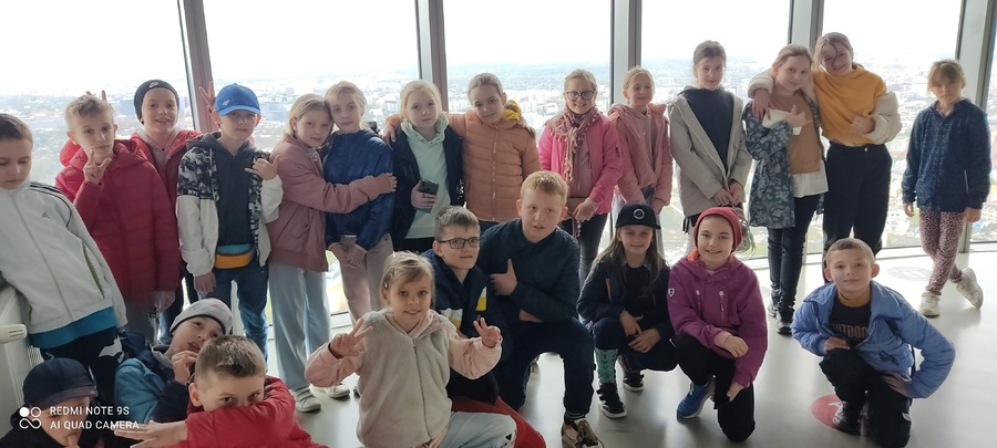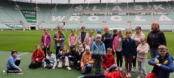 25 kwietnia 2023r. uczniowie klasy III wzięli udział w wycieczce do Wrocławia. Dzieci podziwiały panoramę miasta z przeszklonego tarasu widokowego, który znajduje się na 49 piętrze wieżowca Sky Tower. Pogoda dopisała, więc można było zobaczyć nawet górę Ślężę. Następnie uczniowie udali się na drugie piętro wieżowca, gdzie znajduje się ekspozycja budowli z klocków LEGO. Po obejrzeniu wystawy dzieci udały się do strefy zabaw z niezliczoną ilością atrakcji i inspiracji do tworzenia własnych budowli. Ponieważ większość uczniów naszej klasy to fani piłki nożnej, to kolejnym punktem wycieczki było zwiedzanie jednego z największych stadionów w Polsce: Stadionu Arena Tarczyński. Dzieci zwiedziły stadion od zaplecza. Zobaczyły salę prasową, korytarz historii, strefę zawodników, szatnię WKS Śląsk Wrocław, ławki rezerwowych, trybuny i loże VIP.