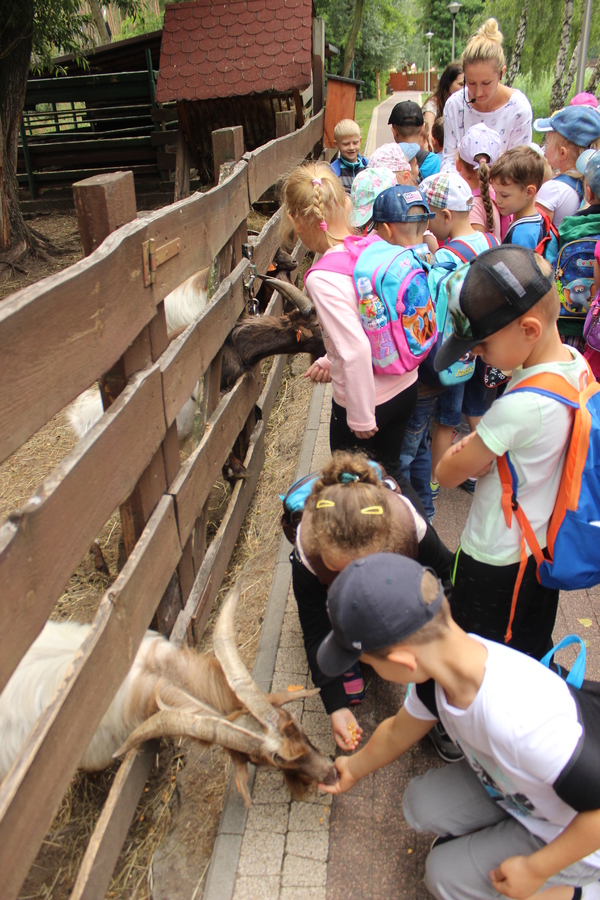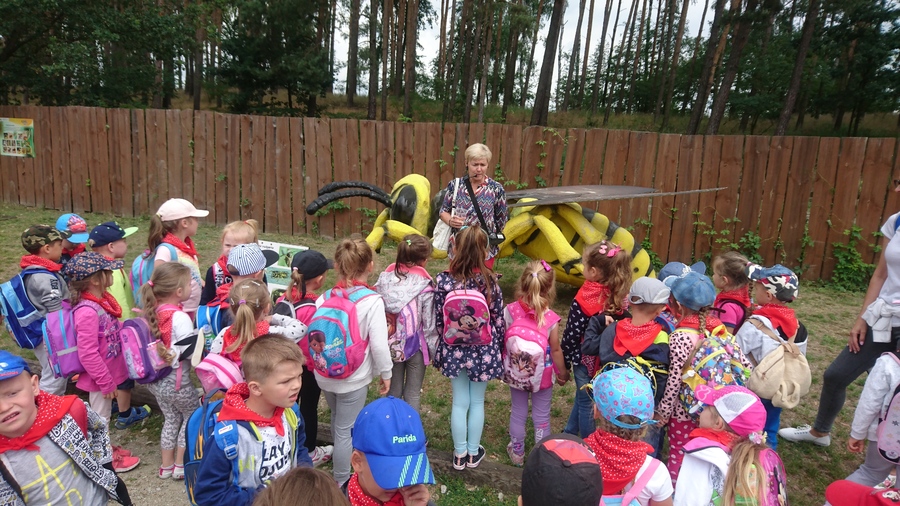 zwierzęta w Mini Zoo. Zdobyły bogatą wiedzę na temat owadów, które możemy spotkać na co dzień. Tyle tylko, że te z Przygodzic przybrały rozmiary o wiele większe od dzieci. Dopełnieniem programu wycieczki była beztroska zabawa na placu zabaw, po której wycieczkowicze zjedli smaczny obiad. Wrócili do domów uśmiechnięci i zadowoleni i już dopytują „Kiedy następna wycieczka?”.