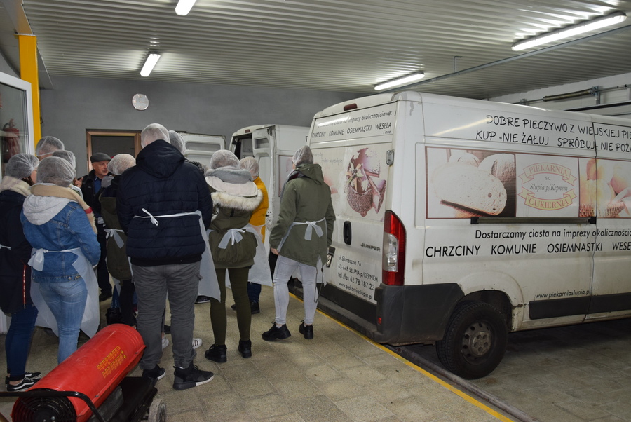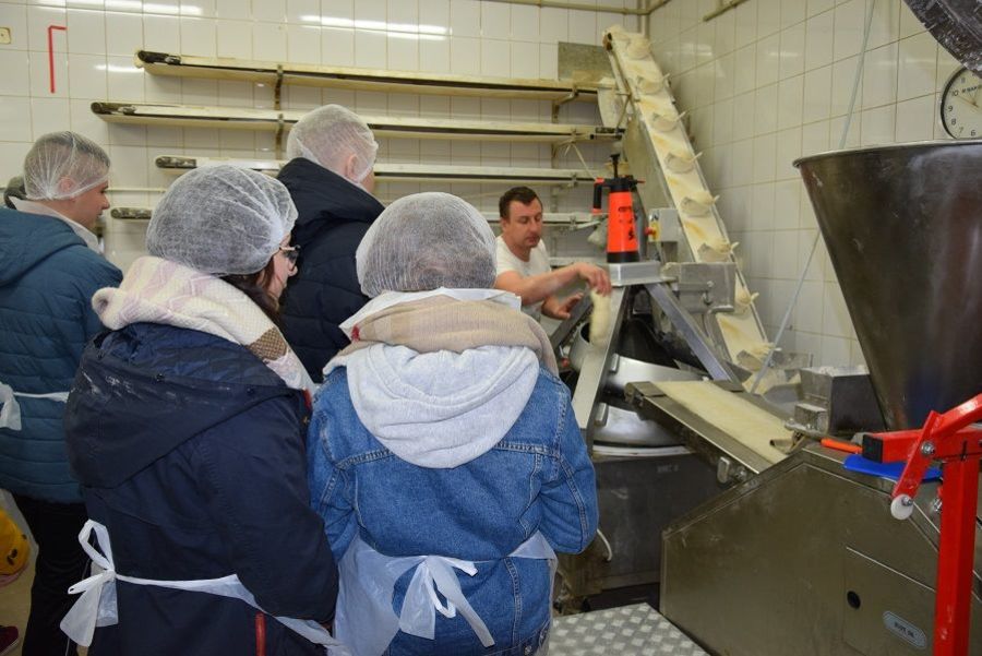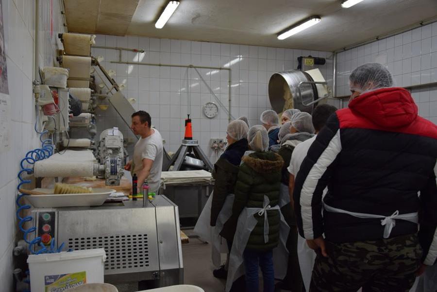 W piekarni-cukierni uczniowie zobaczyli, w jaki sposób wytwarza się chleb, ciasta i torty. Właściciele zakładu z pasją opowiedzieli o swojej drodze do sukcesu. Na koniec wycieczki wszyscy uczestnicy zostali poczęstowani wyprodukowanymi w cukierni babeczkami.