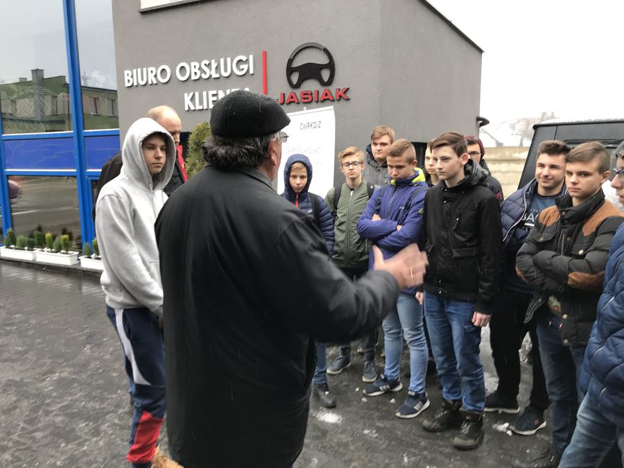 W firmie AUTO-Jasiak uczniów powitali właściciel pan Bogusław Jasiak i Starszy Cechu Rzemiosł Różnych w Kępnie pan Marek Wróbel. Zakład ten istnieje od 1967r. i zajmuje się mechaniką pojazdową, lakiernictwem i blacharstwem. Na terenie zakładu znajduje się również sklep z częściami do samochodów i stacja kontroli pojazdów. Podczas spotkania młodzież dowidziała się o możliwościach nauki zawodu po ukończeniu szkoły podstawowej i gimnazjum. Chłopcy zwiedzili zakład poznając pracę w stacji diagnostycznej, lakierni, blacharni, warsztacie samochodowym. Młodzież otrzymała upominki od CWRKDiZ w Kaliszu.