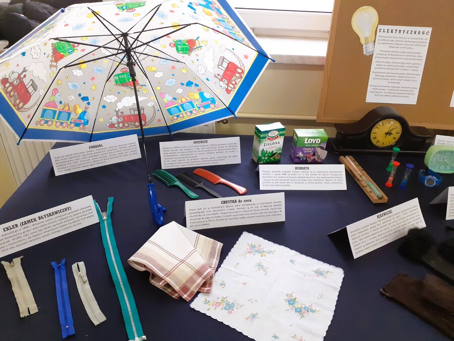 Wystawa ta ma na celu przybliżyć historię powstania niektórych przedmiotów używanych w życiu codziennym. Na wystawie znalazło się min.: zegar, parasol, zamek błyskawiczny, nóż, widelec, łyżka, okulary, filiżanka, zapałki, buty, radio, telefon. Wystawa cieszyła się ogromnym zainteresowaniem uczniów a nawet nauczycieli i pracowników szkoły oraz odwiedzających naszą szkołę rodziców.
