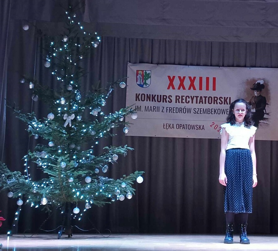 11 grudnia uczennica klasy Vb – Emilia Durlej reprezentowała naszą szkołę na XXXIII Konkursie Recytatorskim im. Marii z Fredrów Szembekowej w Łęce Opatowskiej. Emilia przedstawiła w swojej prezentacji dwa utwory poetyckie: „Wóz i gapie” Marii z Fredrów Szembekowej oraz „Kot w pustym mieszkaniu” Wisławy Szymborskiej. Cieszymy się, że swoją recytacją zdobyła wyróżnienie.