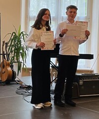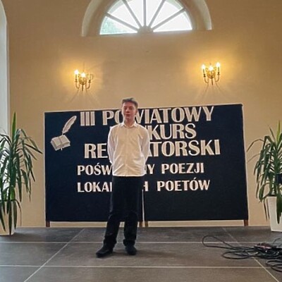Jest nam niezmiernie miło poinformować, że reprezentujący naszą szkołę uczeń kl. VIIb – Oskar Nowak otrzymał w tym konkursie wyróżnienie. Oskar zaprezentował dwa utwory: „Jesienny smutek” Danuty Zofii Buks i „anielskie niewidki” Renaty Adamskiej-Garbowskiej.