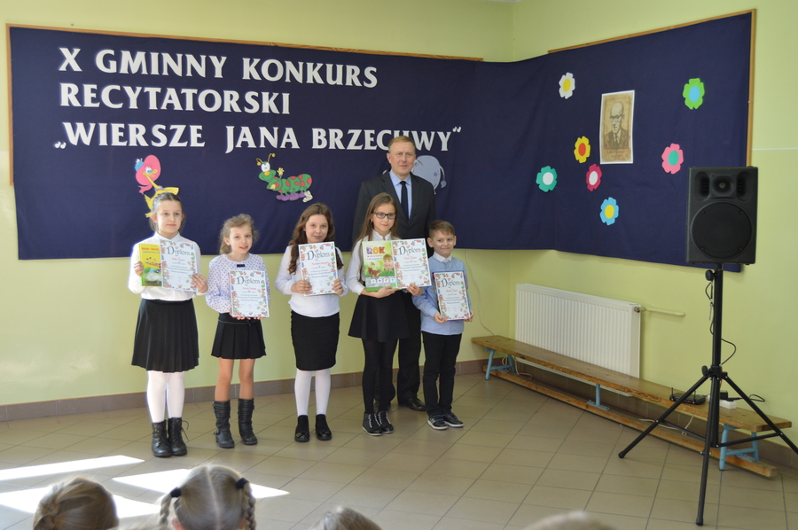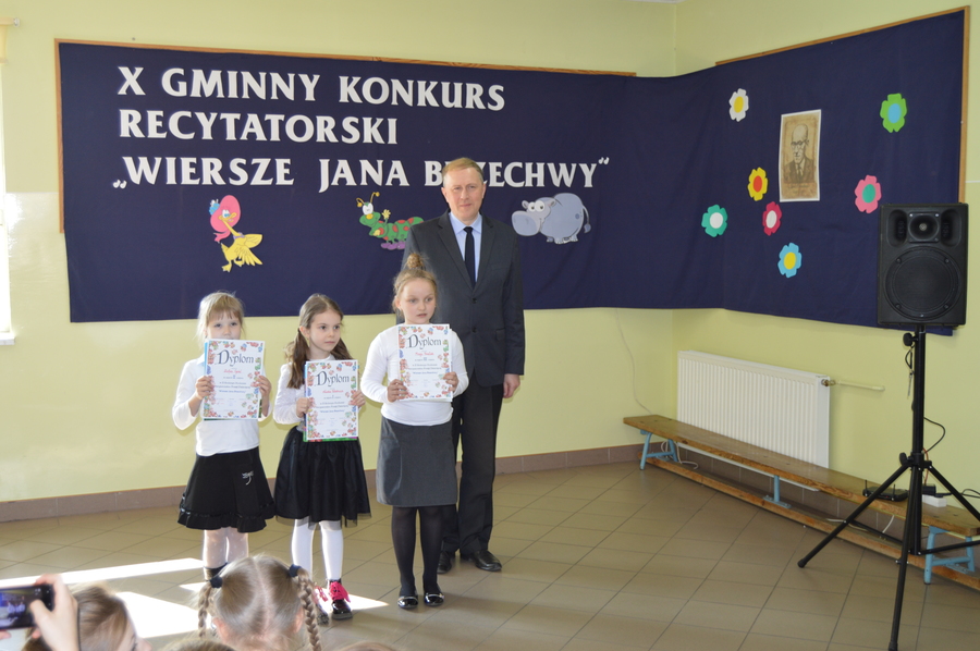 Nagrody i pamiątkowe dyplomy uczestnikom konkursów wręczał wójt Gminy Trzcinica Grzegorz Hadzik. Osoby wyróżnione otrzymały nagrody książkowe, natomiast wszyscy uczestnicy konkursu plastycznego otrzymali lizaki. Na zakończenie uroczystości wójt podziękował organizatorom konkursu, komisji konkursowej oraz nauczycielom, którzy pomagali uczniom przygotować piękne recytacje oraz prace plastyczne.