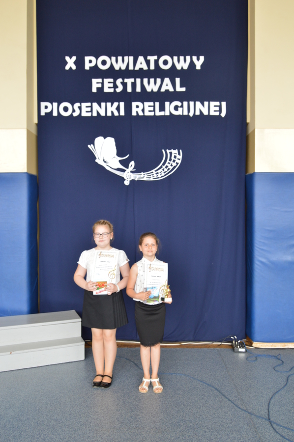Naszą szkołę na festiwalu reprezentowały: Zuzanna Durlej z kl. IIIc i Michalina Jokiel z kl. IVa. Ich występy należały do bardzo udanych. Zuzanna zaśpiewała piosenkę „Anioł stróż” i zajęła I miejsce. Michalina wykonała utwór „Historia o Dobrym Pasterzu”. Obie uczestniczki przygotowywała pani Renata Adamska.
