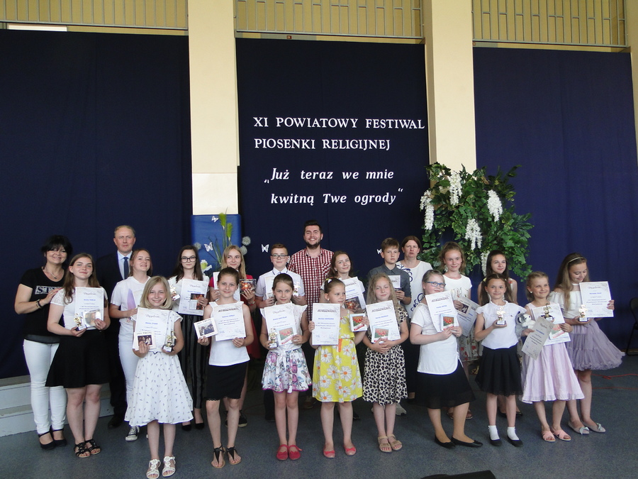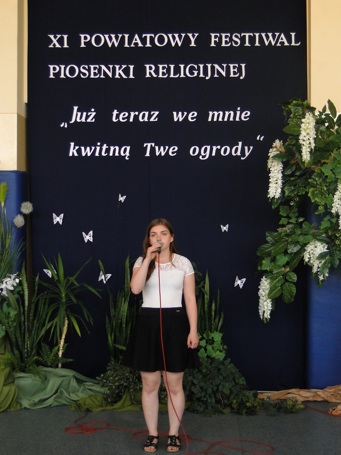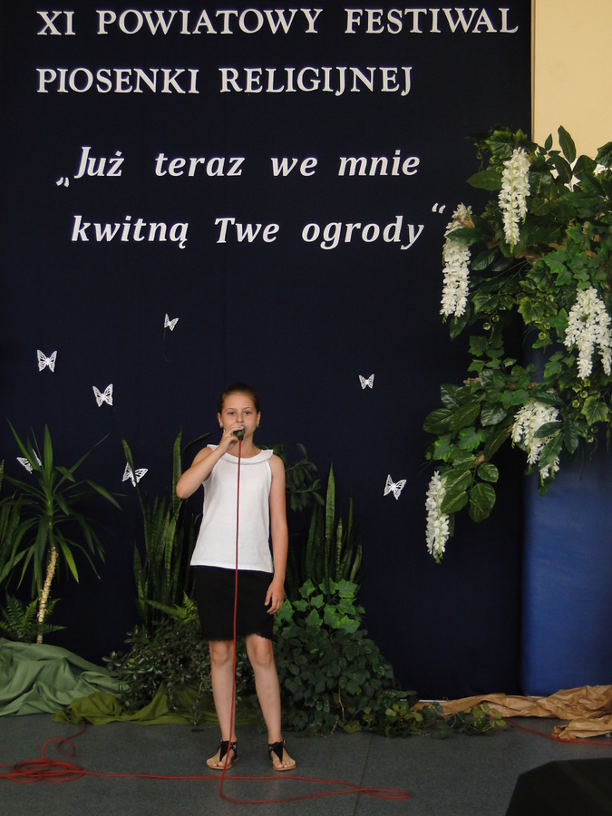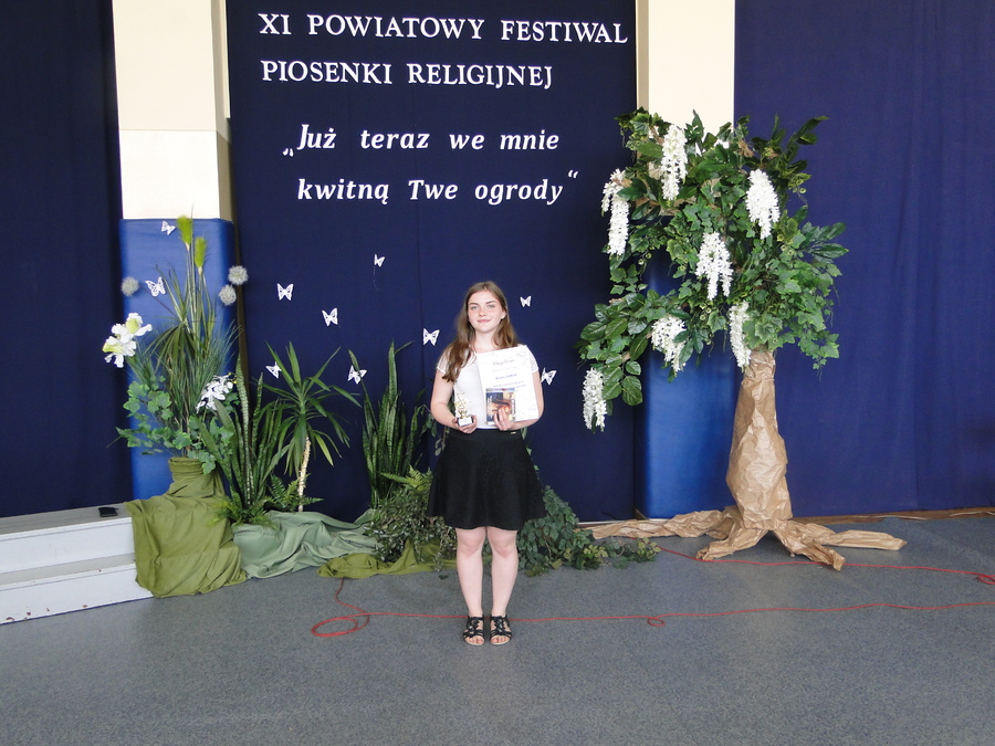 Naszą szkołę na festiwalu reprezentowały: Maja Kozikowska z kl. I, Zuzanna Durlej z kl. IVc i Natalia Pawlik z kl. VIIIb. Ich występy należały do bardzo udanych. Maja zaśpiewała piosenkę pt. „Jezu ufam Tobie”, Zuzanna zaśpiewała „Piosenkę o Dobrym Pasterzu” i zdobyła wyróżnienie, a Natalia „Modlitwą” Okudżawy wyśpiewała I miejsce. Wszystkie uczestniczki przygotowywała pani Renata Adamska. Gratulujemy!