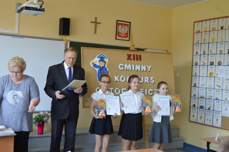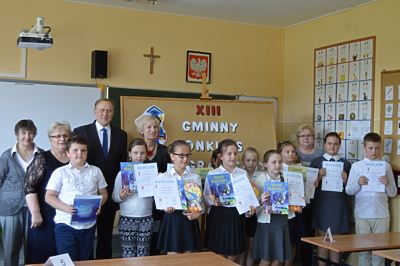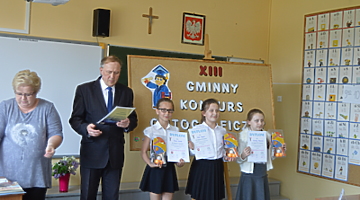 Wójt Gminy Trzcinica Grzegorz Hadzik wręczył wszystkim uczestnikom konkursu dyplomy i nagrody ufundowane przez Urząd Gminy w Trzcinicy. Podziękował członkom komisji konkursowej za pracę i nauczycielom za trud włożony w przygotowanie uczniów do konkursu.