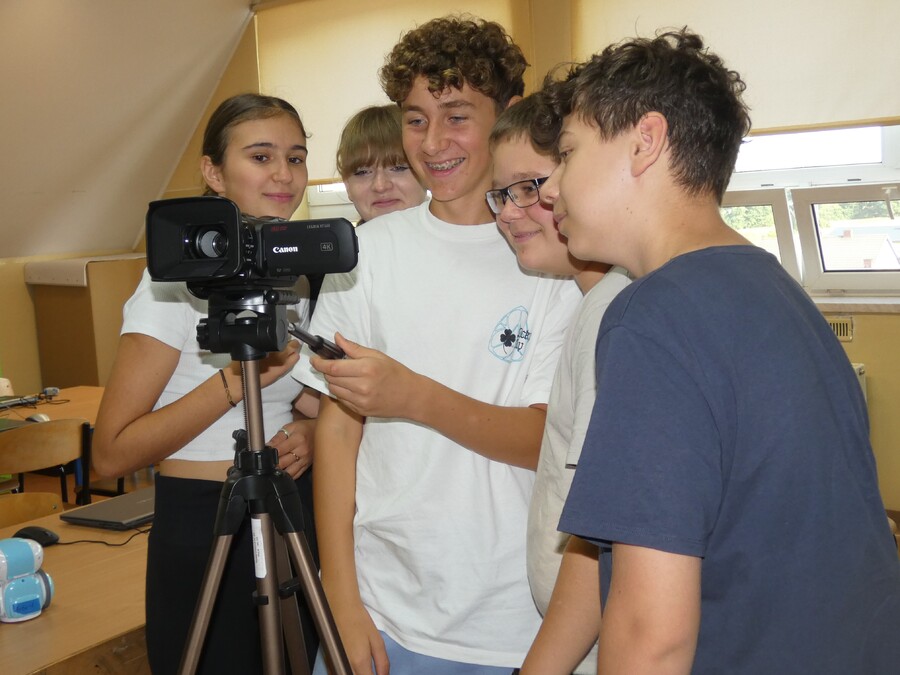 Pod koniec września w naszej szkole powstała sekcja fotograficzno-filmowa. Uczniowie w ramach zajęc dodatkowych uczą się obsługi i pracy na sprzęcie pozyskanym dzięki programowi Laboratoria Przyszłości. Zajęcia pozwalają na rozwijanie pasji fotograficznych, uczą pracy z martwą naturą, ruchem, światłem, kadrowania i wreszcie innego spojrzenia na rzeczywistość z drugiej strony obiektywu. Ponadto dzięki pracy z aparatem, kamerą mogą doskonalić swoją koncentrację na wykonywanym działaniu, pracy, a to przecież potrzebne jest każdemu i z pewnością zaowocuje w przyszłości. Pierwsze kroki działania sekcji mogliśmy już zobaczyć podczas dwóch ostatnich szkolnych uroczystości. Trzymamy kciuki za ich dalszy rozwój.