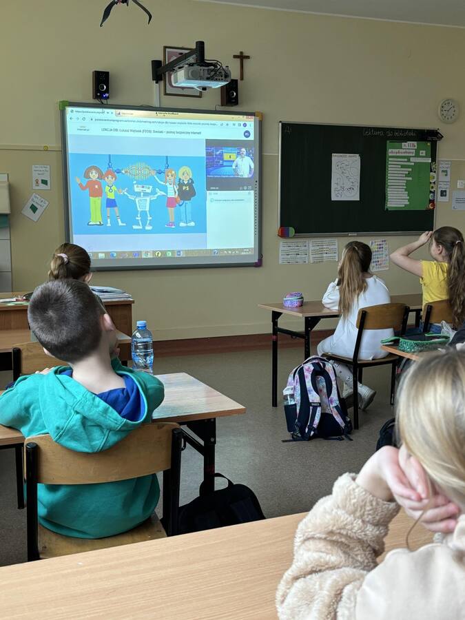 W ramach akcji "Bezpieczny Internet", korzystając z platformy saferinternet.pl, uczniowie edukacji wczesnoszkolnej wzięli udział w lekcji online. Lekcja nawiązywała do fabuły książek z serii „Sieciaki” i treści serwisu edukacyjnego dla dzieci Sieciaki.pl.