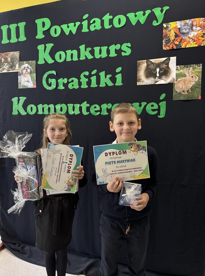 24 kwietnia w Zespole Szkół w Laskach odbył się III Powiatowy Konkurs Grafiki Komputerowej. Tegoroczna edycja tego konkursu zorganizowana została pod hasłem: ”Mój Pupil”. Konkurs był skierowany do uczniów klas III. Naszą szkołę reprezentowało dwoje uczniów: Marta Rabiega z kl. IIIa i Piotr Maryniak z kl. IIIb. Uczniowie ci zwyciężyli w eliminacjach szkolnych tego konkursu.