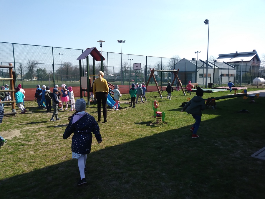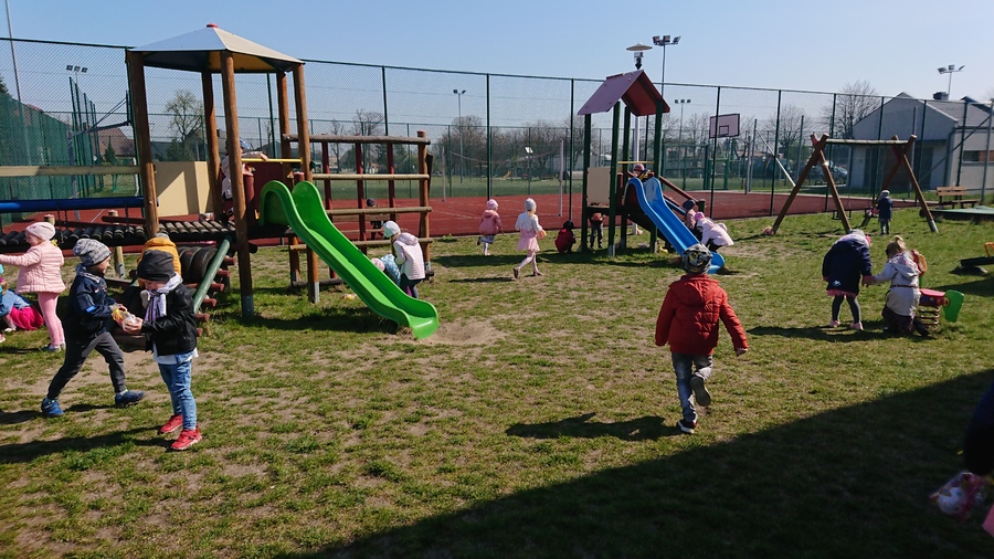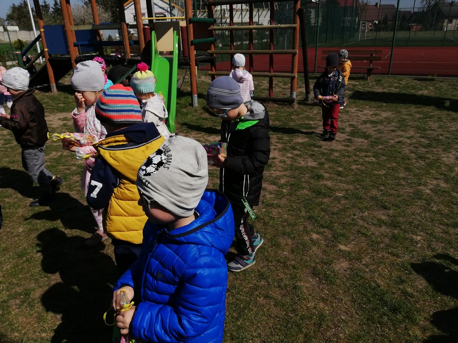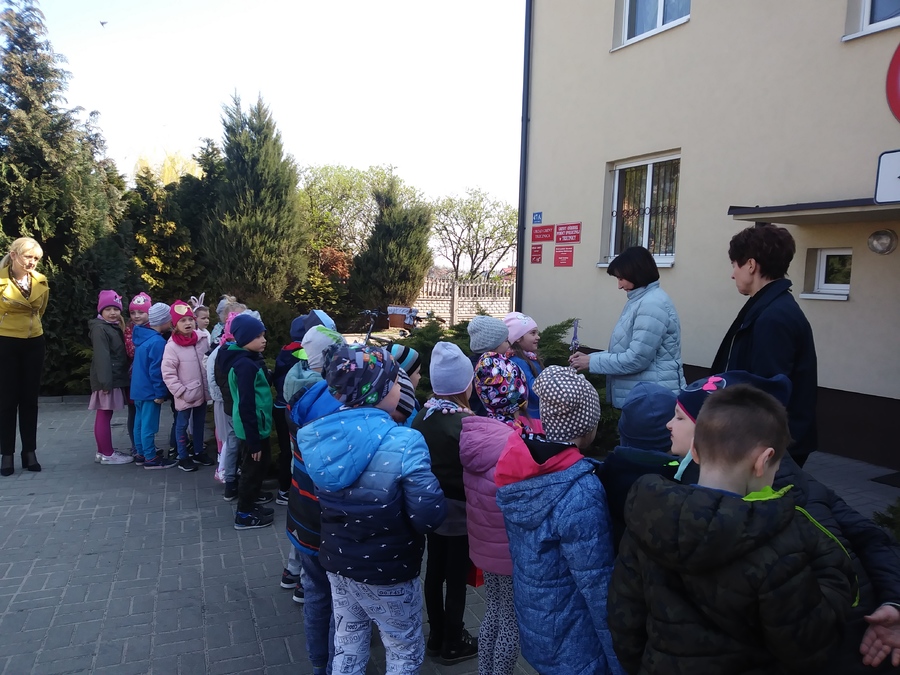 Słoneczna pogoda w dniu 17.04.2019r. sprzyjała przedszkolakom w przedświątecznym spacerze. Grupy przedszkolne podzieliły się na dwa zespoły. Starsze grupy „Muchomorki” i „Smoki Dinusie” udały się z życzeniami do Urzędu Gminy w Trzcinicy oraz Gminnego Ośrodka Pomocy Społecznej. Sekretarz Gminy Pani Renata Ciemny przyjęła życzenia w imieniu Wójta Gminy i wszystkich pracowników. Dziękując obdarowała wszystkie grupy przedszkolne cukierkami. Młodsze grupy „Krasnoludki” i „Jeżyki” odwiedziły Gminną Bibliotekę Publiczną oraz Dyrekcję i sekretariat Zespołu Szkół w Trzcinicy. Po spacerze z życzeniami dzieci wróciły do przedszkola, w którym czekała na nie niespodzianka w postaci prezentów od „Zajączka”. Radość, zachwyt i szczęście w oczach dzieci, które szukały na przedszkolnym placu zabaw „koszyczków” to obraz nie do zapomnienia. Rozmawiając o wrażeniach w sali dzieci częstowały się cukierkami. Dziękujemy Radzie Rodziców przedszkola za pomoc w organizacji tak ciekawego dnia.