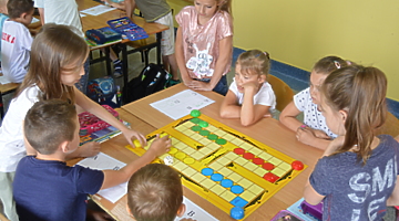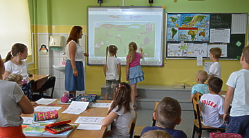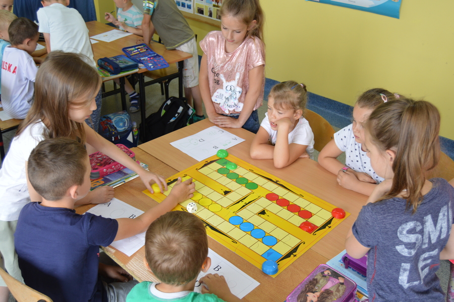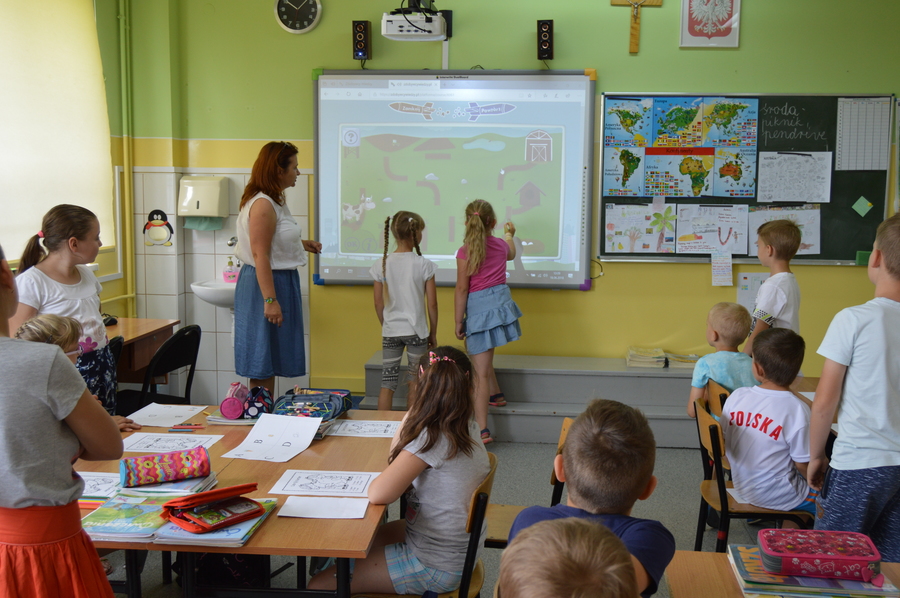 Dzieci zostały serdecznie przyjęte przez uczniów klas I-III i panie nauczycielki. W czasie pobytu obejrzały pomieszczenia szkolne, razem ze swoimi starszymi kolegami zasiadły w ławkach szkolnych i wzięły udział w ciekawych zajęciach (m.in. literackich, plastycznych, muzycznych i ruchowych). Podczas zajęć rozwiązywały zagadki logiczne, a także bawiły się pracując z tablicą interaktywną.